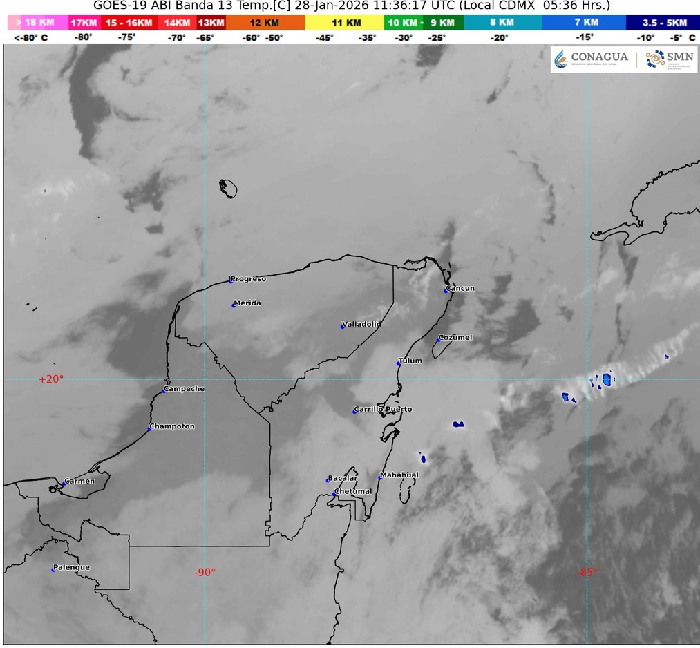 QUINTANA ROO — Este 28 de enero de 2026 el estado amanece con temperaturas cálidas y una sensación térmica ligeramente superior debido a la humedad que predomina en la región. La presencia de nubosidad parcial y vientos moderados mantiene un ambiente estable, aunque con percepción de calor en zonas costeras.