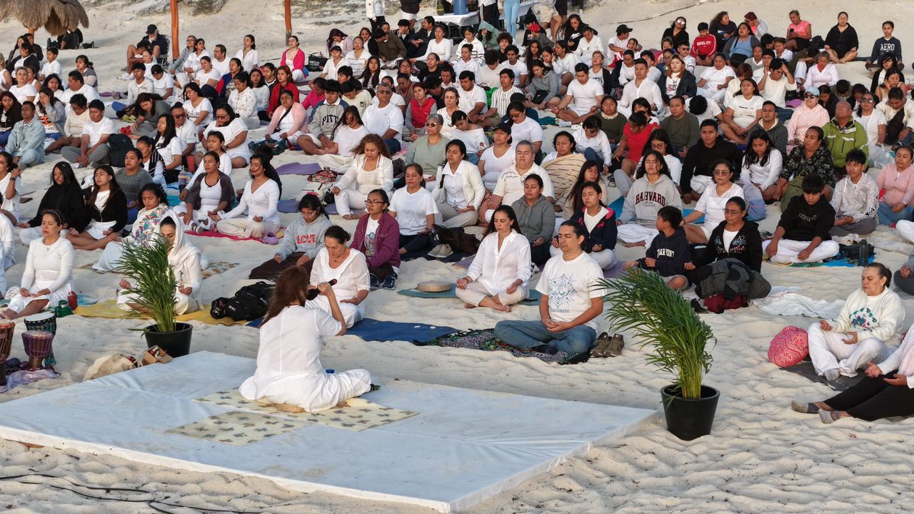El evento, realizado al iniciar el equinoccio de primavera, tuvo como propósito fortalecer la salud emocional de la ciudadanía mediante técnicas de meditación guiada, respiración consciente y ejercicios corporales que permiten reducir el estrés y mejorar la calidad de vida. Desde muy temprano, los asistentes se acomodaron sobre la arena blanca para recibir los primeros rayos del sol, en un entorno que reforzó la conexión con la naturaleza y la calma interior.