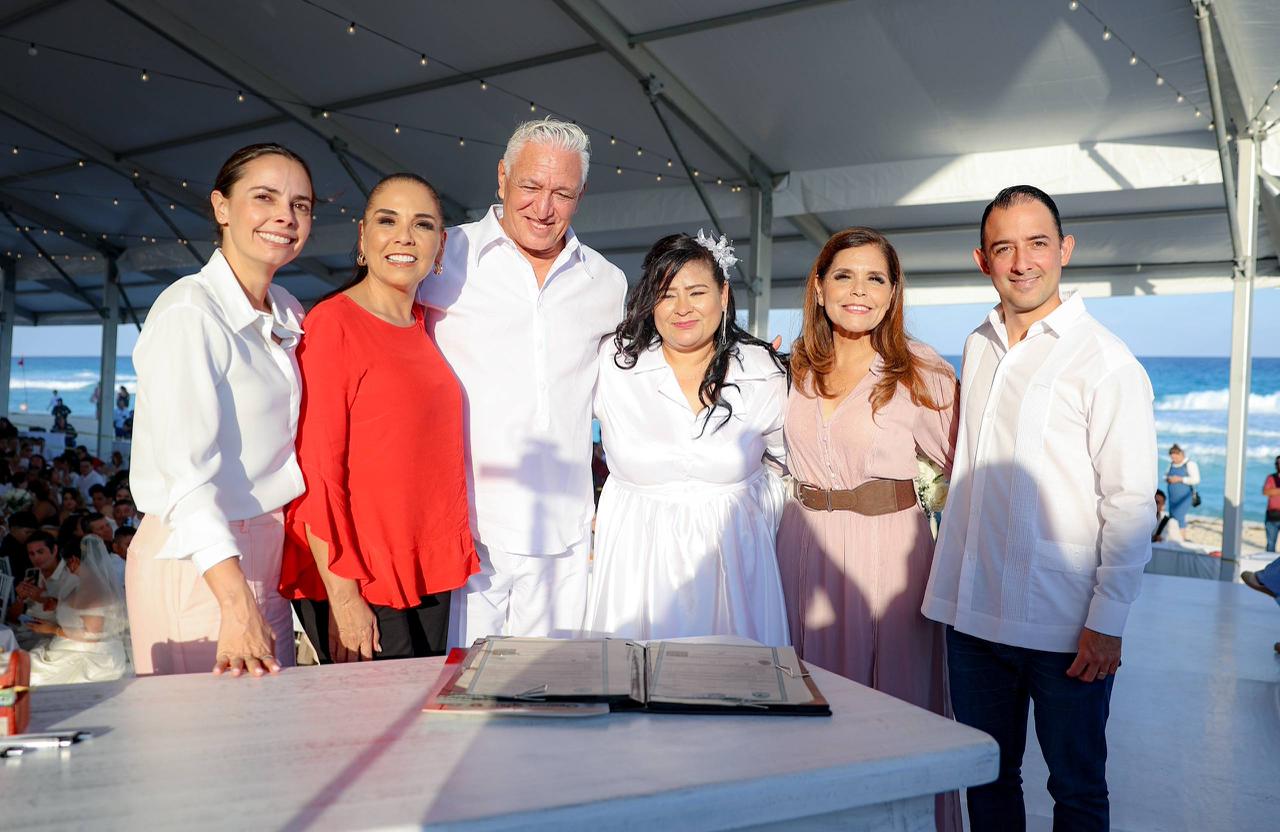 Las playas de Cancún fueron escenario de una de las celebraciones más emotivas del año: las Bodas Colectivas 2026, donde 357 parejas unieron sus vidas frente al Mar Caribe, acompañadas por la presidenta municipal Ana Paty Peralta, la gobernadora Mara Lezama y la presidenta honoraria del DIF Quintana Roo, Verónica Lezama Espinosa. La ceremonia, realizada en Playa Delfines, se convirtió en un símbolo de unión, esperanza y fortalecimiento del tejido social.