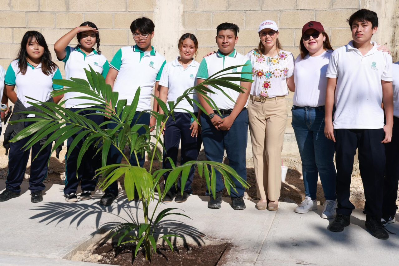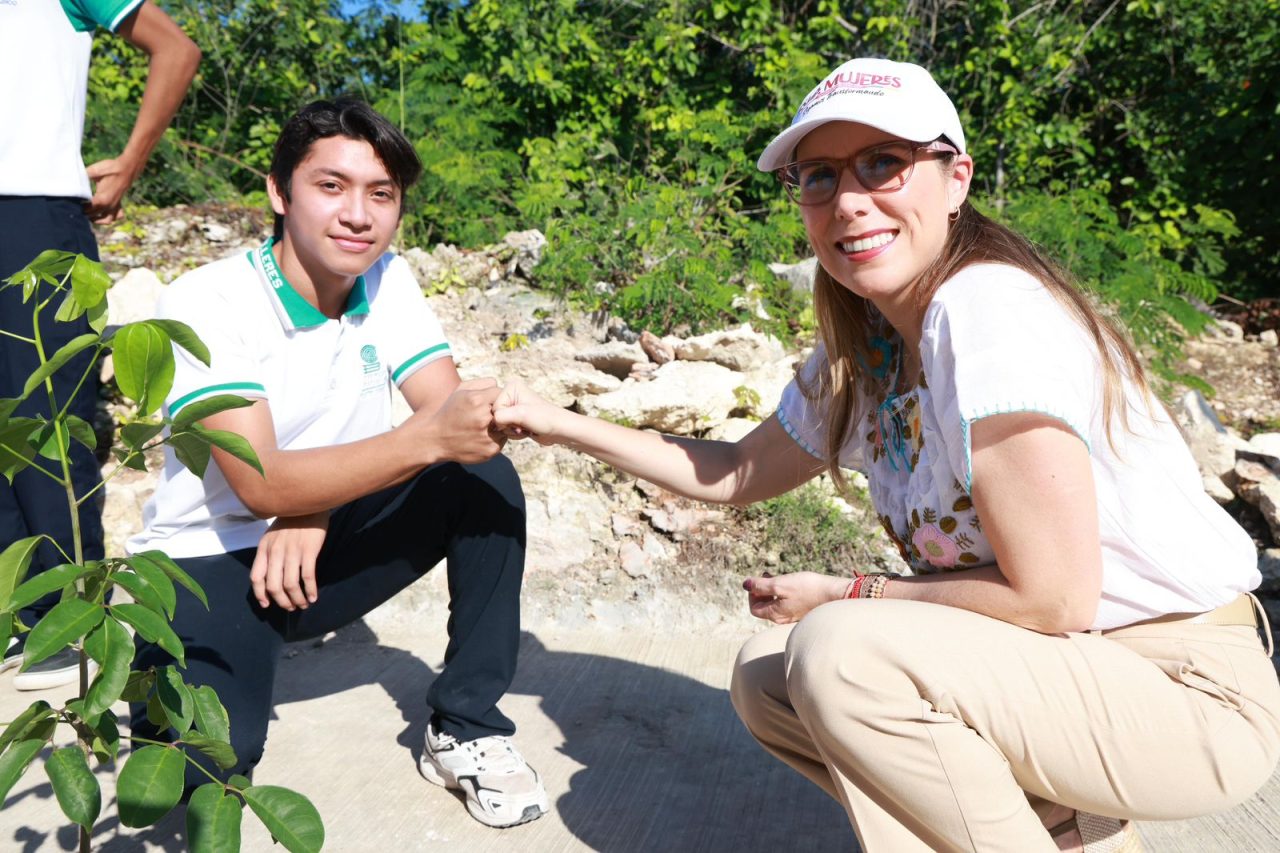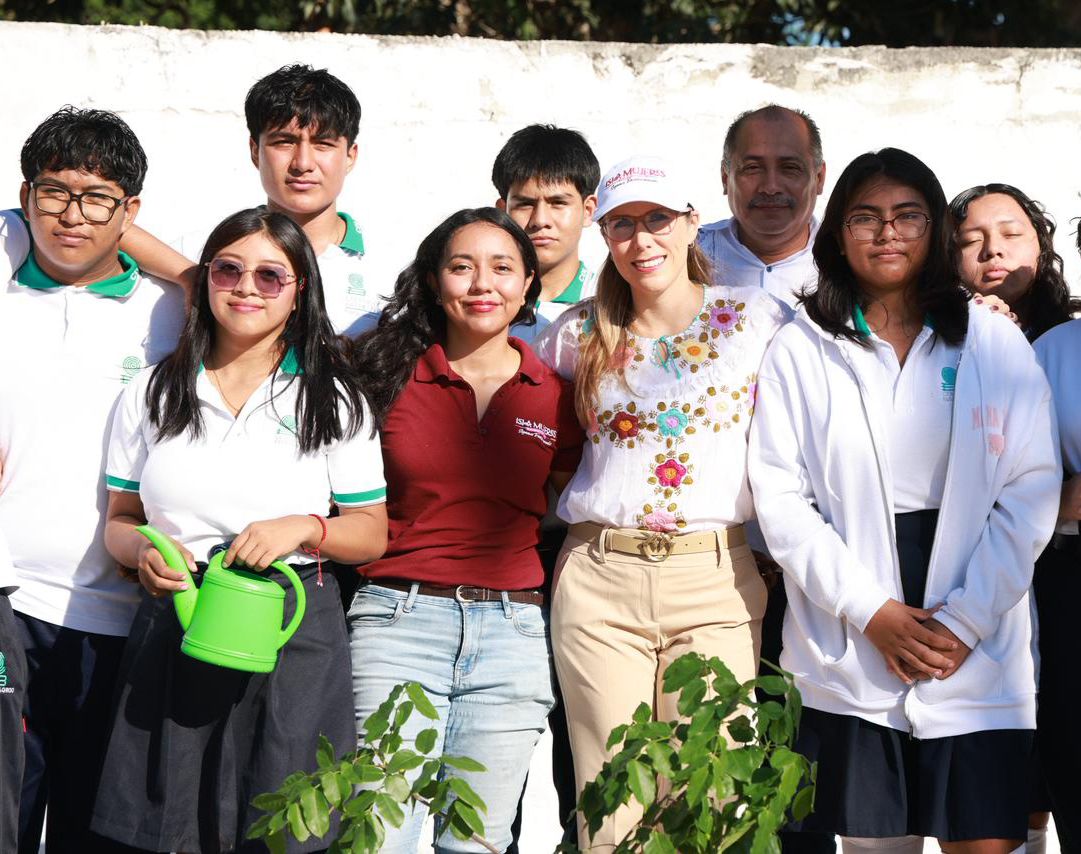 Durante la actividad, se plantaron 15 árboles en la calle de acceso al plantel, sumándose a los 20 sembrados previamente, como parte de una estrategia integral para recuperar y preservar los espacios verdes del municipio. La alcaldesa destacó que “cada árbol que plantamos hoy es un compromiso con nuestra Isla Mujeres”, subrayando la importancia de que las nuevas generaciones se involucren activamente en el cuidado del medio ambiente.