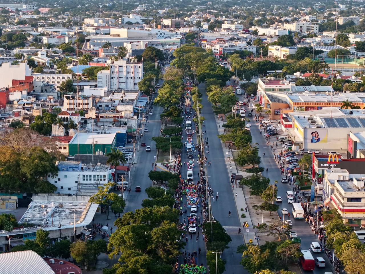 Desde el atardecer, la Avenida Chichén Itzá se transformó en un corredor festivo con el cuarto y último desfile de comparsas, carros alegóricos y soberanos del carnaval. Familias, academias, escuelas y agrupaciones independientes llenaron la Zona Fundacional de color y energía, convirtiendo el recorrido en una auténtica pasarela de creatividad local.