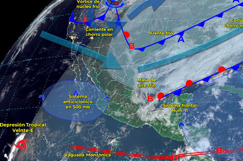 Según el SMN, el frente frío interactúa con una vaguada polar y una corriente en chorro subtropical, lo que ha generado lluvias puntuales intensas en Veracruz, Oaxaca, Chiapas y Tabasco, así como chubascos en Puebla, Campeche y Yucatán. Además, se reportan vientos con rachas de hasta 80 km/h en el Istmo de Tehuantepec y oleaje elevado en el Golfo de México.