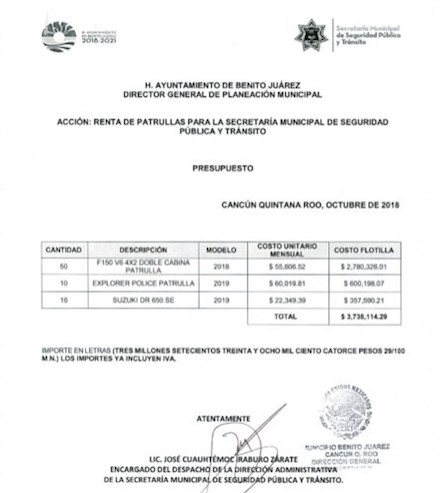 Remberto Estrada Barba impuso durante su administración el esquema de arrendamiento patrullas, mismo que ahora Mara Lezama da continuidad, no obstante asegura la propia alcaldesa que no será con la misma empresa y en breve darán a conocer los detalles de la asignación.