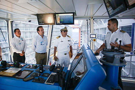 Cabe destacar que tras el protocolo de bienvenida, el Presidente Municipal realizó un recorrido por el navío, el cual cuenta con lujosa alberca, jacuzzis, pista de correr, cabañas privadas con vista al mar, con espacios donde el diseño y el arte se fusionan, además de tres cubiertas en la popa del barco con poco más de dos mil metros cuadrados de vidrio, cabinas con numerosas incorporaciones tecnológicas, como un panel de pantalla táctil que maneja las ventanas, la temperatura, iluminación, entre otras.