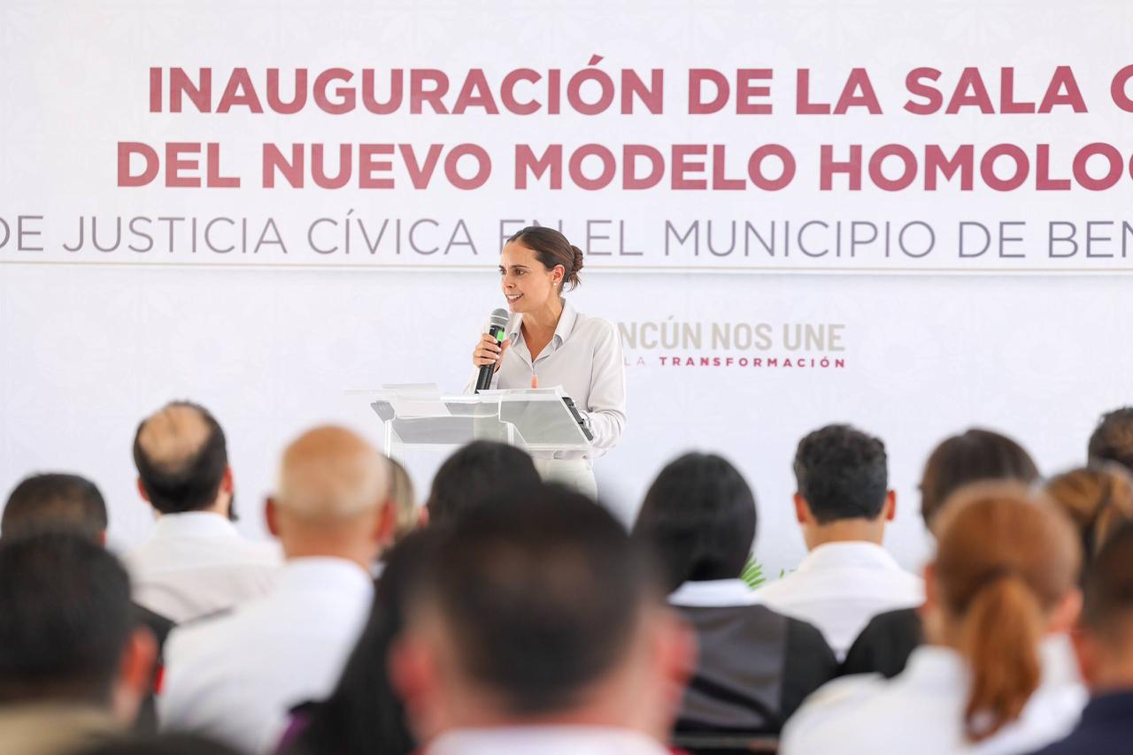 Cancún, Q. R., 07 de noviembre de 2025.– En un paso decisivo hacia la construcción de una ciudad más justa y pacífica, la Presidenta Municipal Ana Paty Peralta inauguró la primera sala oral de Juzgados Cívicos en Benito Juárez, convirtiendo a Cancún en el primer municipio de Quintana Roo en adoptar el Modelo Homologado de Justicia Cívica. Esta iniciativa forma parte de la estrategia nacional encabezada por la Presidenta de México, Claudia Sheinbaum, para recuperar la paz desde la raíz: el respeto a la legalidad y la atención integral a los infractores.