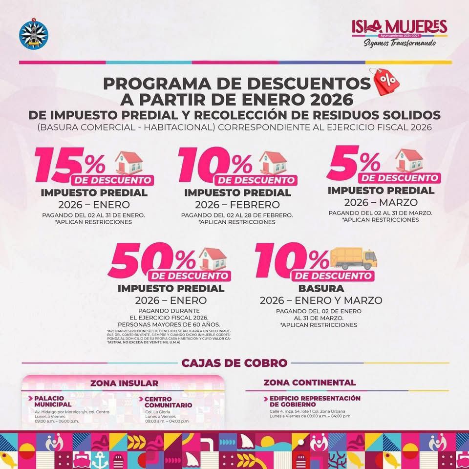 DESCUENTOS EN PREDIAL 2026: ISLA MUJERES EXHORTA A APROVECHAR LOS ÚLTIMOS DÍAS DE ENERO