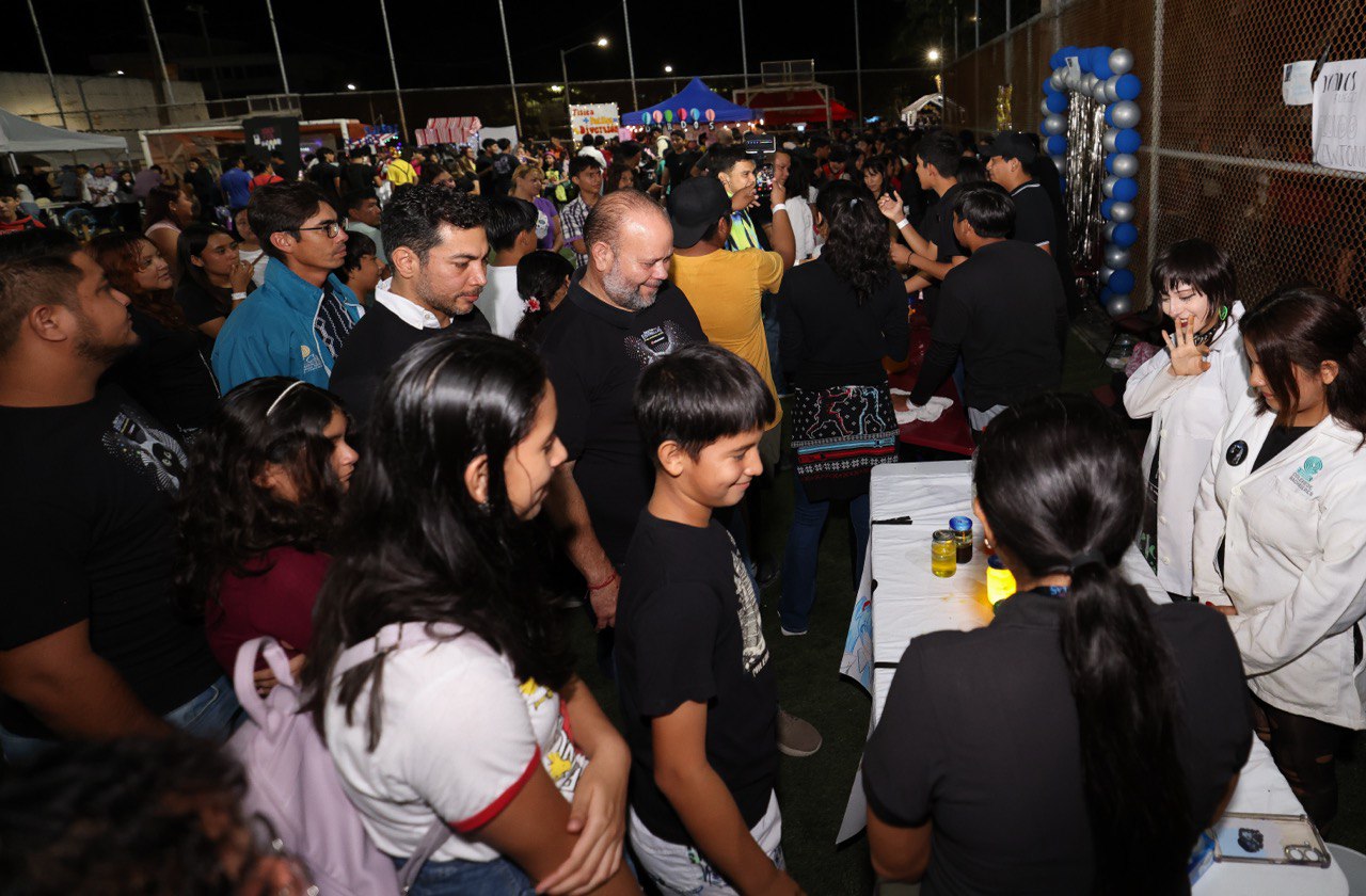 La velada, realizada en la unidad deportiva de la colonia Pescadores, marcó la novena edición en Puerto Morelos y la décimo séptima a nivel continental. Bajo el lema “Entre Estrellas y Átomos”, la jornada buscó acercar el conocimiento astronómico y científico a niñas, niños, jóvenes y familias, en un ambiente de convivencia y aprendizaje.