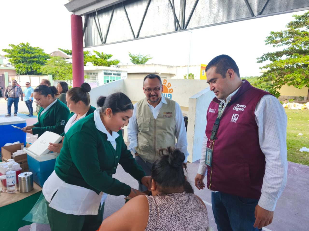 En Xcalak, el IMSS desplegó servicios integrales que incluyeron vacunación, actividades deportivas y culturales, promoción de la salud, pláticas de afiliación, corte de cabello y entrega de donativos proporcionados por el Voluntariado del Instituto. La participación activa de la población y el compromiso del personal de salud permitieron que estas acciones se desarrollaran con éxito.