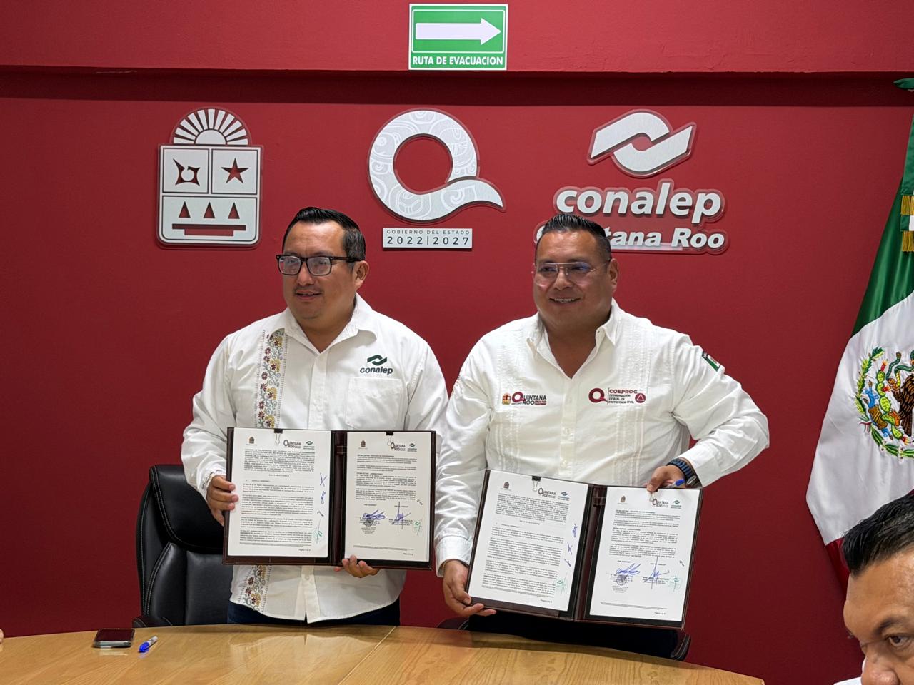 Chetumal.— En un paso decisivo para fortalecer la seguridad escolar en Quintana Roo, la Coordinación Estatal de Protección Civil (COEPROC) y el Colegio Nacional de Educación Profesional Técnica (CONALEP) firmaron un convenio de colaboración que marca el inicio del Modelo de Planteles Resilientes, una estrategia que busca consolidar una cultura preventiva en toda la comunidad educativa del estado.