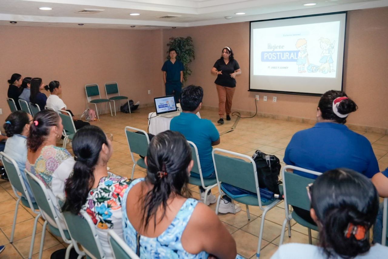 El taller fue impartido por el equipo de fisioterapia del DIF Cozumel, conformado por Adolfo de la O Tun, Yazmin Guadalupe Burgos Yam, Adriana Jaquelin Sánchez May y los practicantes María Andrea Pérez Fernández, Vania Mariant Alanis Cetina y Yuselmi Juaney López Espinoza. Durante la jornada, se instruyó a las y los participantes en prácticas clave como mantener la espalda recta, doblar las rodillas al agacharse y distribuir el peso de forma eficiente al cargar.