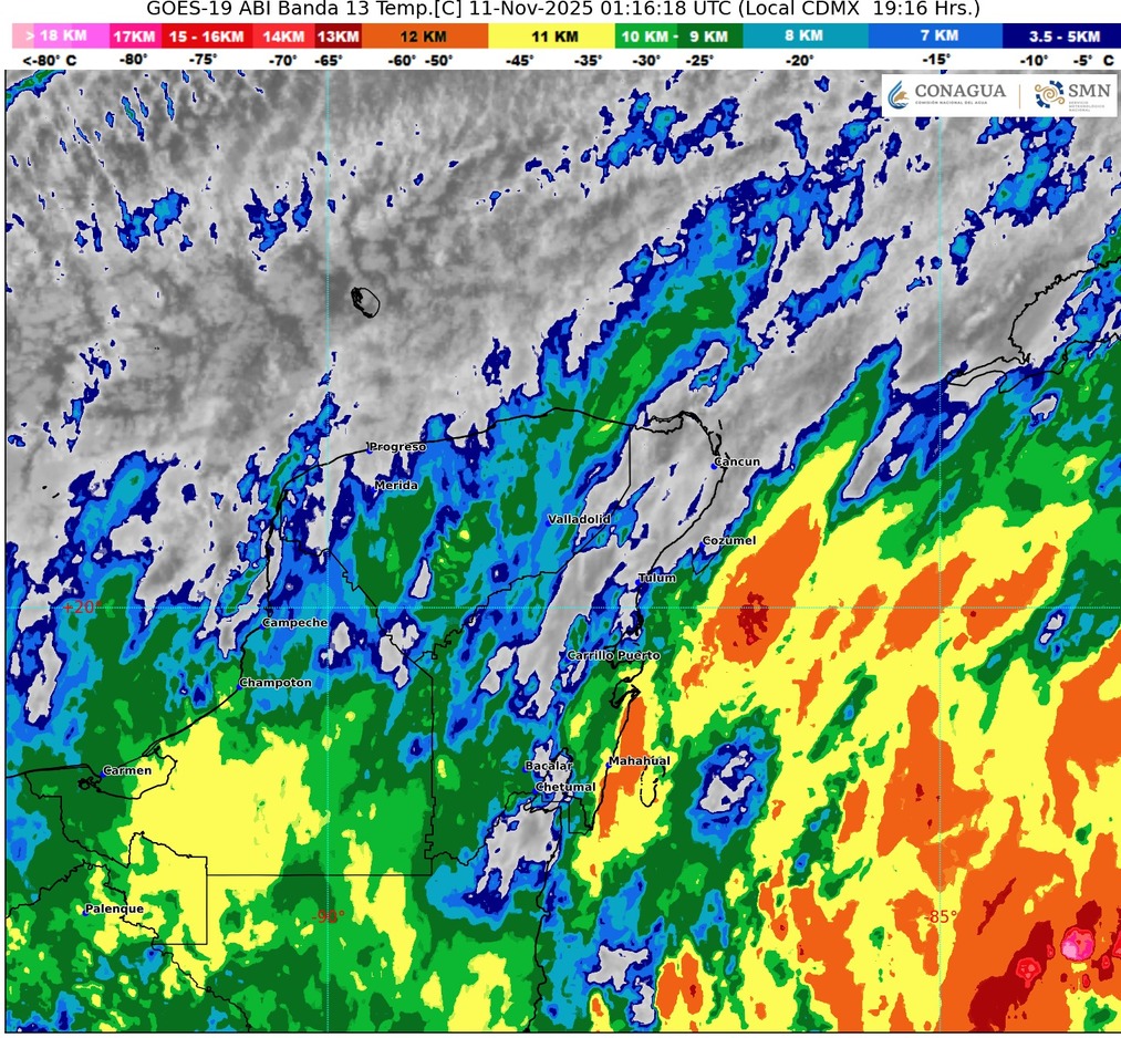 Chetumal, Q. Roo — 11 de noviembre de 2025. El estado de Quintana Roo se prepara para una jornada atípicamente fresca este martes, con temperaturas máximas que rondarán los 24 °C y mínimas cercanas a los 22 °C. La masa de aire polar asociada al frente frío número 11 ha modificado las condiciones térmicas en la región, generando un ambiente más templado de lo habitual para esta época del año.