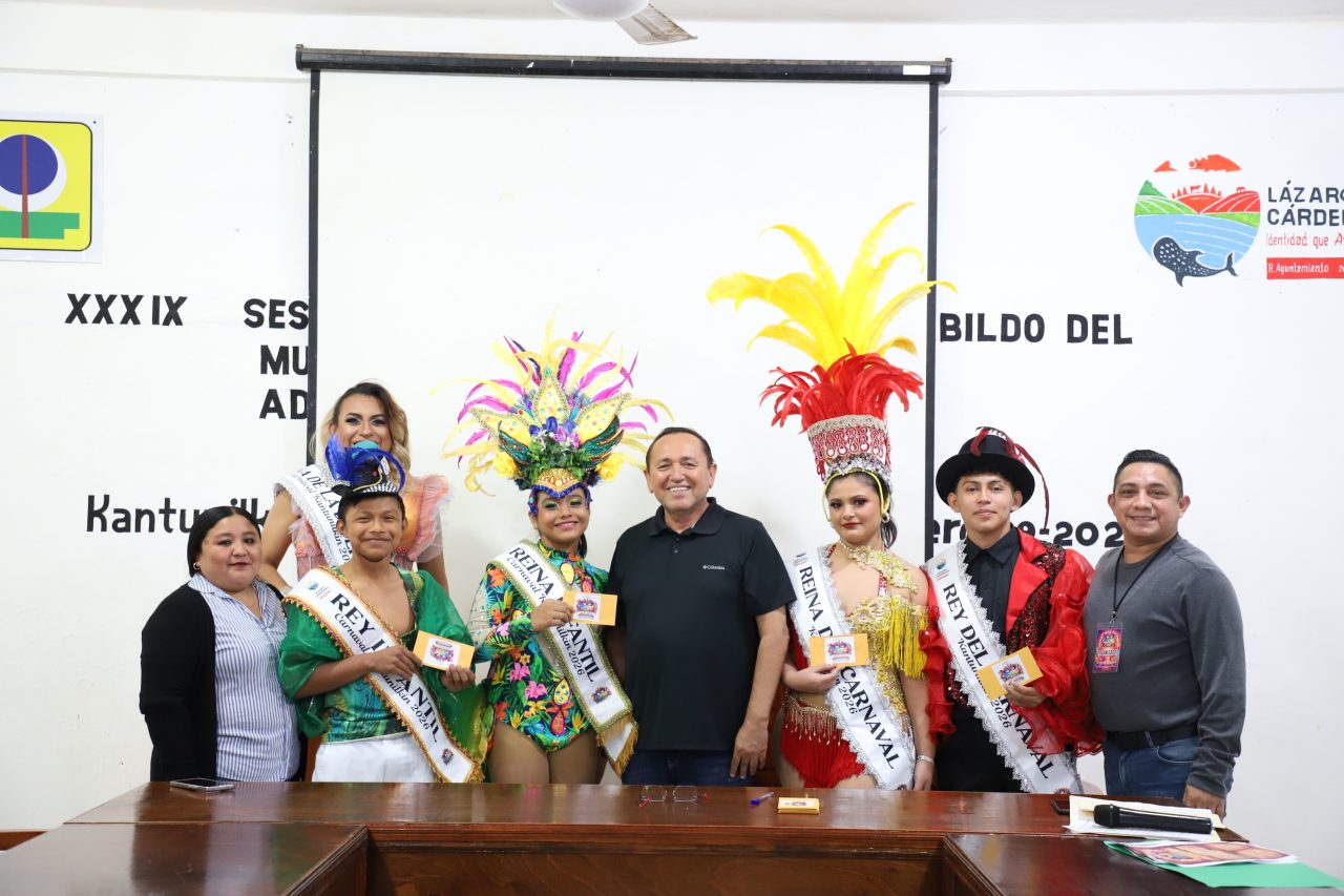 Kantunilkín, 04 de febrero de 2026.— El Ayuntamiento de Lázaro Cárdenas presentó oficialmente a los soberanos del Carnaval 2026, en un evento encabezado por el presidente municipal Nivardo Mena, quien aseguró que esta edición será una de las más importantes de los últimos años gracias a la participación de artistas de renombre nacional que atraerán a miles de visitantes.