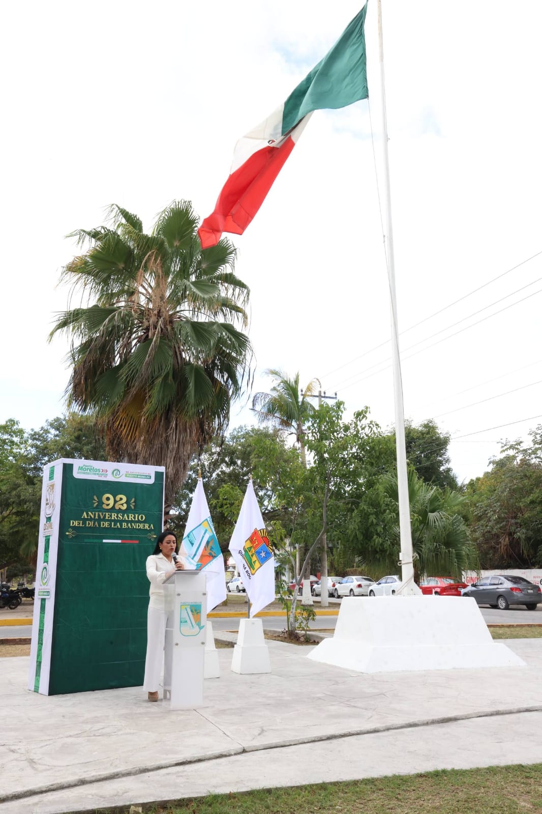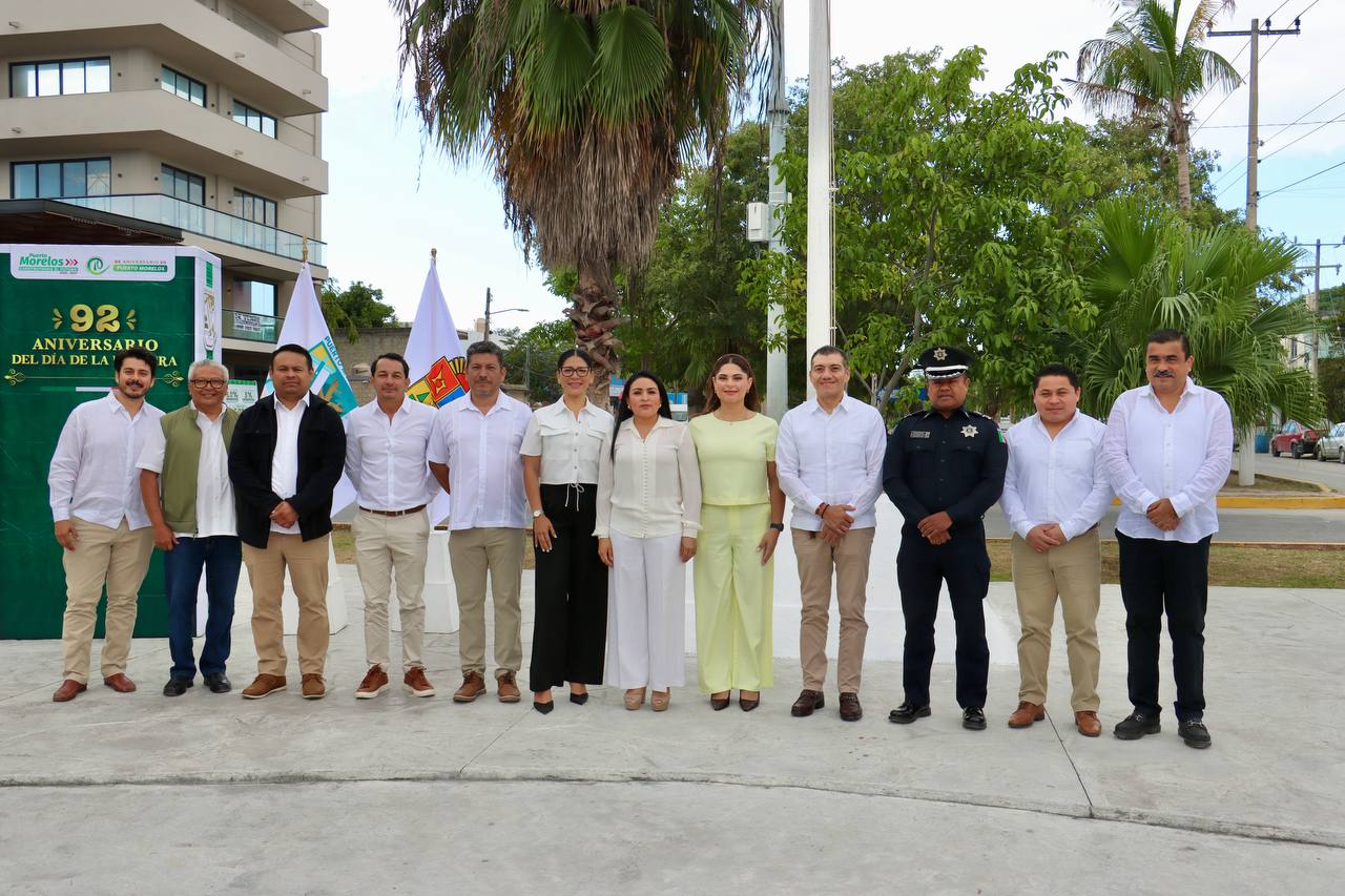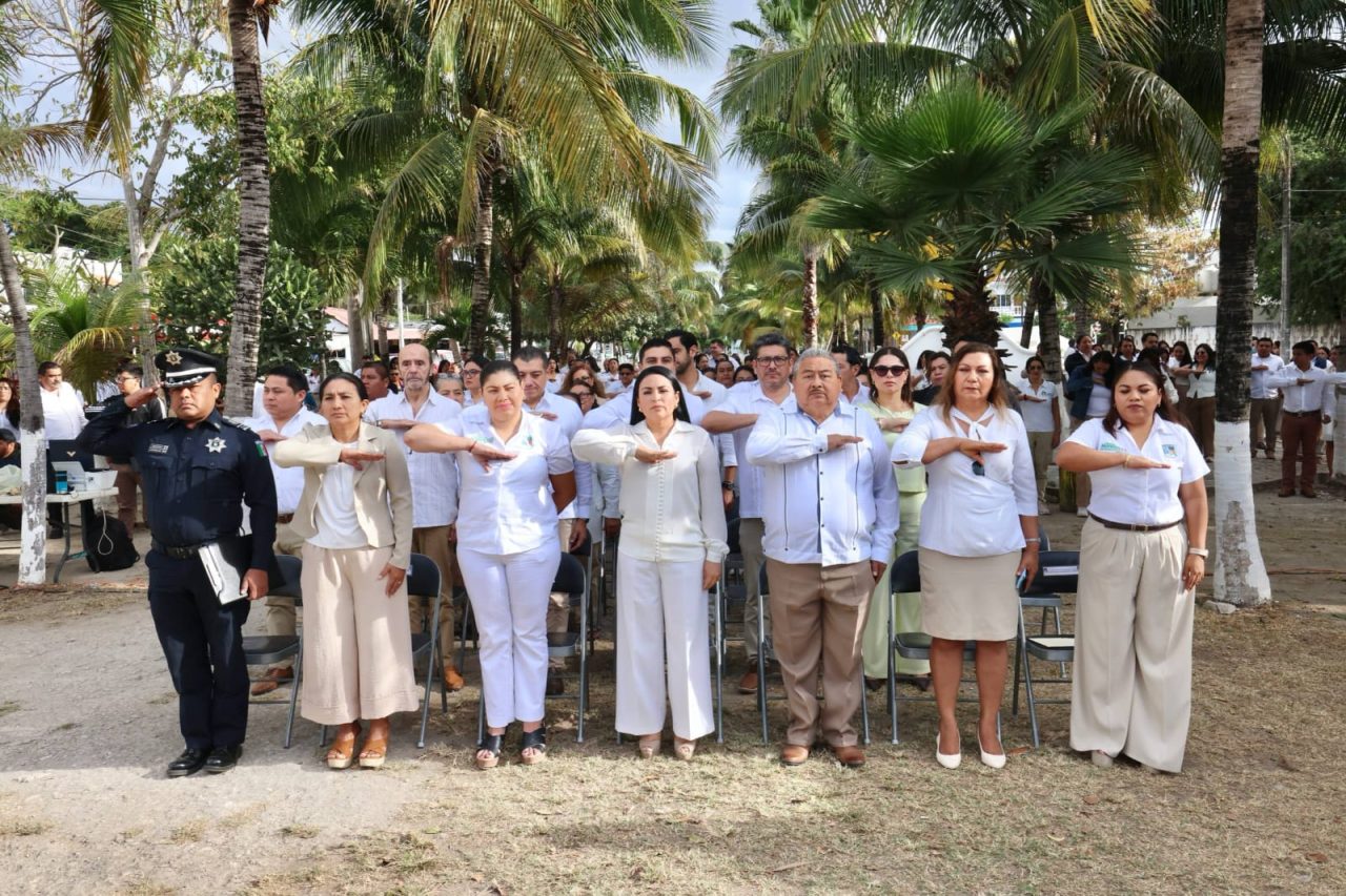 Puerto Morelos, Quintana Roo.— En una ceremonia solemne realizada en la explanada del Palacio Municipal, la presidenta Blanca Merari Tziu encabezó el acto conmemorativo por el 92 aniversario del Día de la Bandera, destacando el profundo significado histórico y moral del lábaro patrio como símbolo de independencia, unidad, trabajo y transformación nacional.