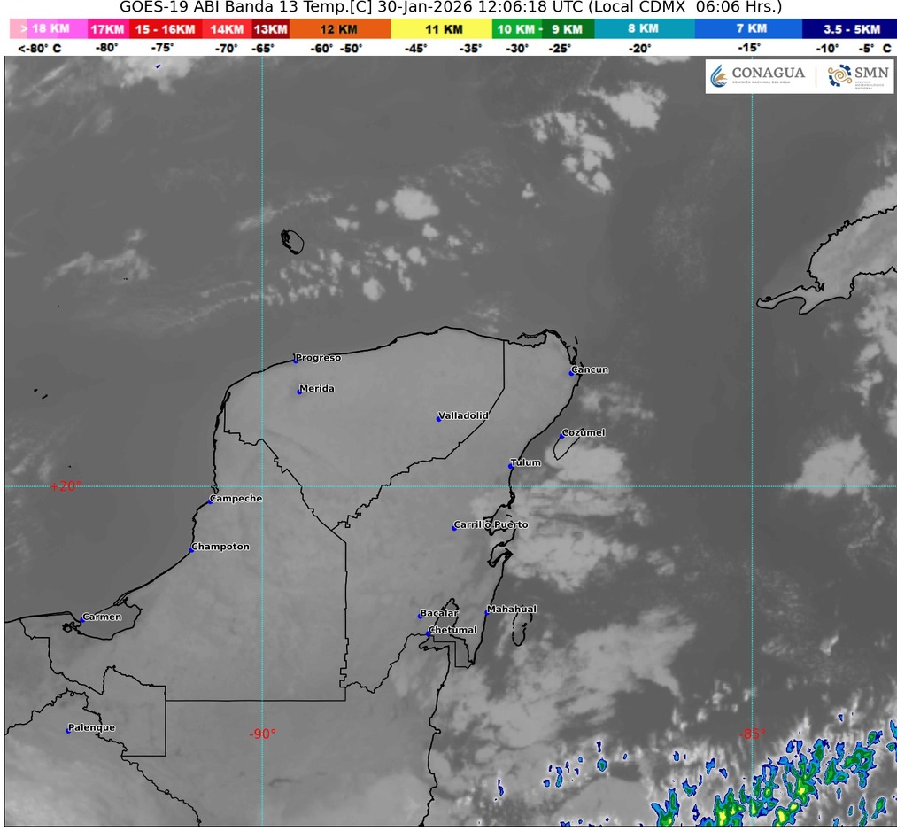 Quintana Roo, 30 de enero de 2026. El estado inicia la jornada con condiciones estables, cielo mayormente despejado y un ambiente cálido que favorece las actividades al aire libre. La mañana comenzó con temperaturas frescas en la zona norte, que irán aumentando hacia el mediodía, alcanzando valores propios de la temporada invernal en el Caribe mexicano.