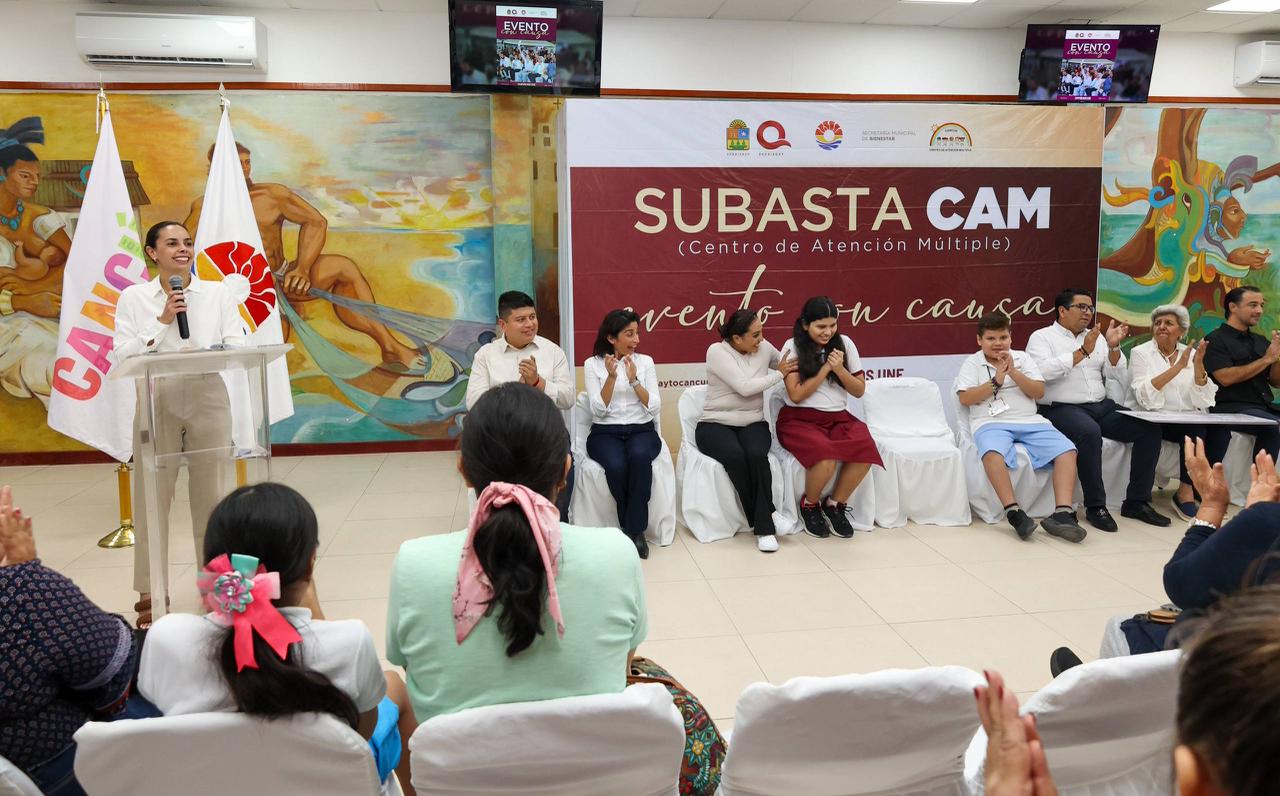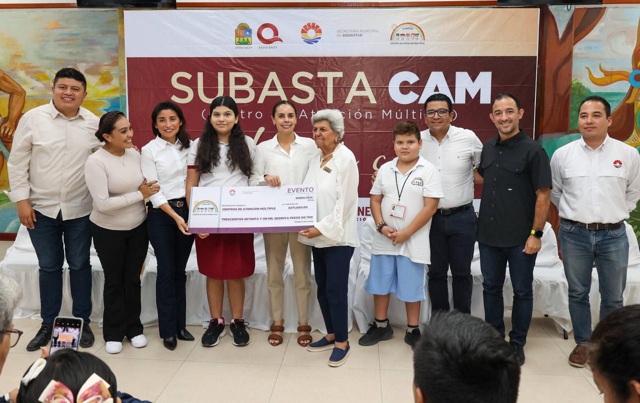 Cancún, Q. R., 14 de enero de 2026.– En un acto que refuerza el compromiso social del gobierno municipal con la inclusión y el bienestar de la niñez, la presidenta municipal Ana Paty Peralta entregó un cheque por más de 371 mil pesos a los 10 Centros de Atención Múltiple (CAM) de Cancún. El recurso proviene de la Subasta CAM realizada en diciembre, un evento con causa que busca transformar la solidaridad ciudadana en acciones concretas para niñas, niños y adolescentes con discapacidad.