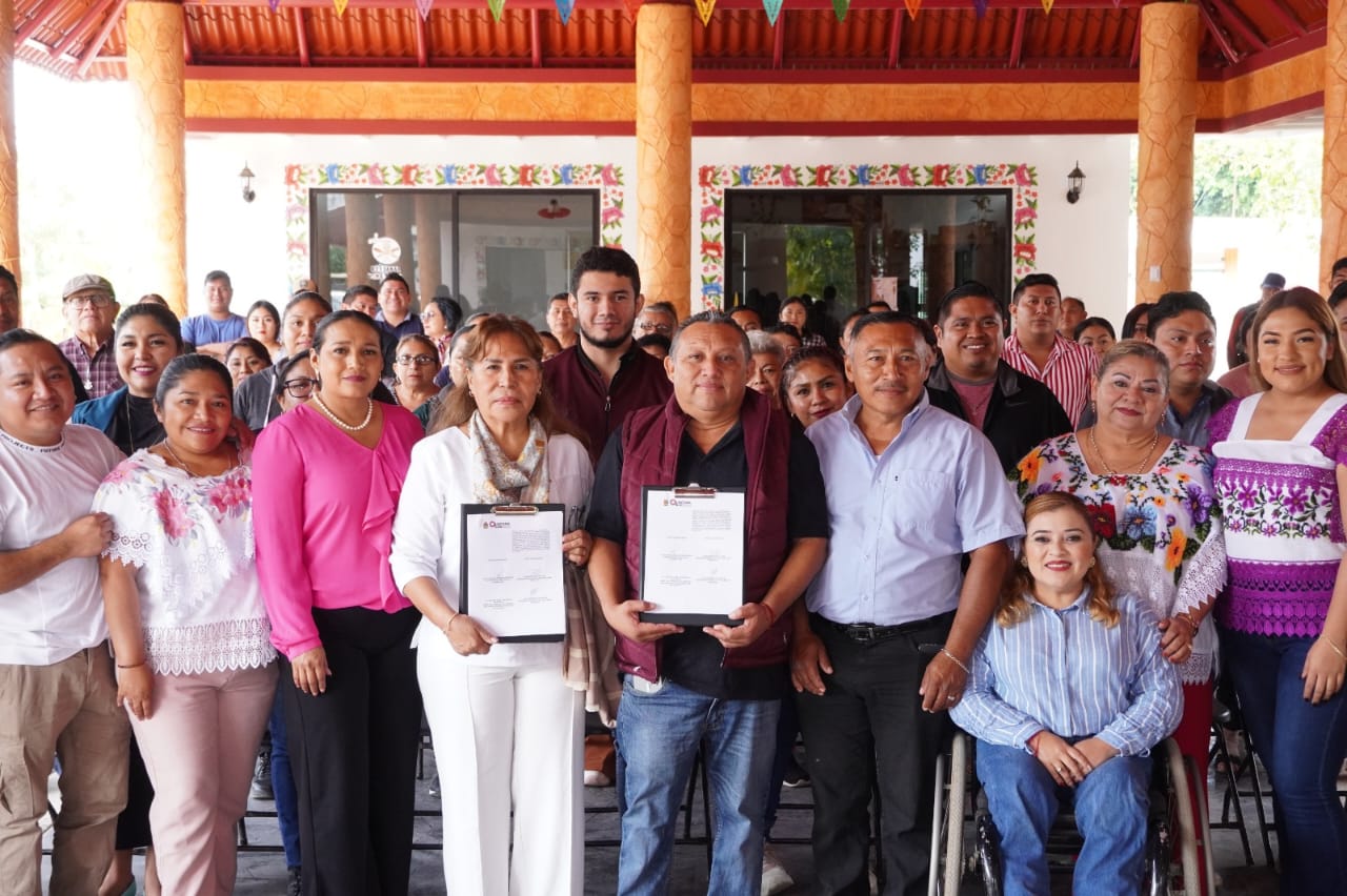 El acuerdo fue signado por Martha Parroquín Pérez, secretaria de Finanzas y Planeación; Erik Noé Borges Yam, presidente municipal de José María Morelos; y Héctor José Contreras Mercader, director general del Servicio de Administración Tributaria de Quintana Roo, acompañados por autoridades municipales y estatales.
