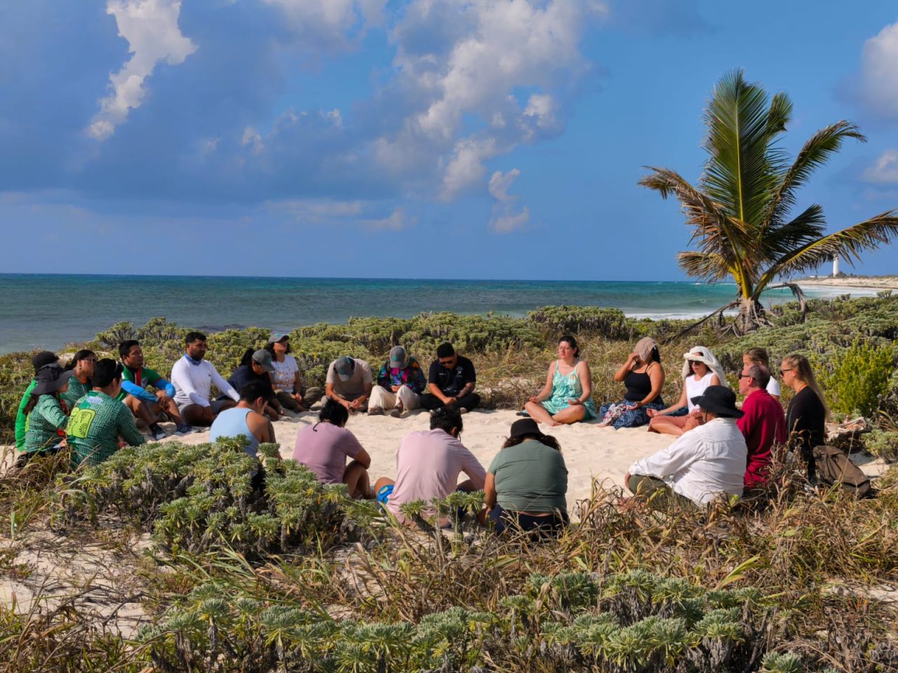La experiencia inició en la playa de Punta Sur con una sesión de meditación guiada por el maestro Luis Miguel Pérez Martín, quien condujo a las y los asistentes a un ejercicio de introspección en contacto directo con el entorno natural. Este espacio de conexión personal abrió paso a un recorrido hacia la Laguna Xtacún, donde el director de Punta Sur, Jesús Benavides Andrade, expuso los avances logrados durante casi dos décadas de trabajo comunitario enfocado en la recuperación del manglar.
