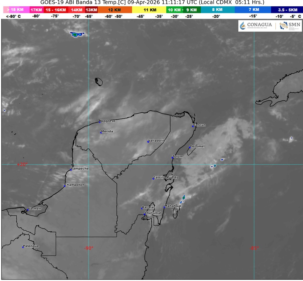 Quintana Roo inicia este 9 de abril de 2026 con un ambiente caluroso, humedad elevada y cielo parcialmente nublado en gran parte del estado. Durante el transcurso del día se prevén periodos de sol fuerte, así como lluvias aisladas en zonas del centro y sur debido al ingreso de humedad proveniente del Caribe.