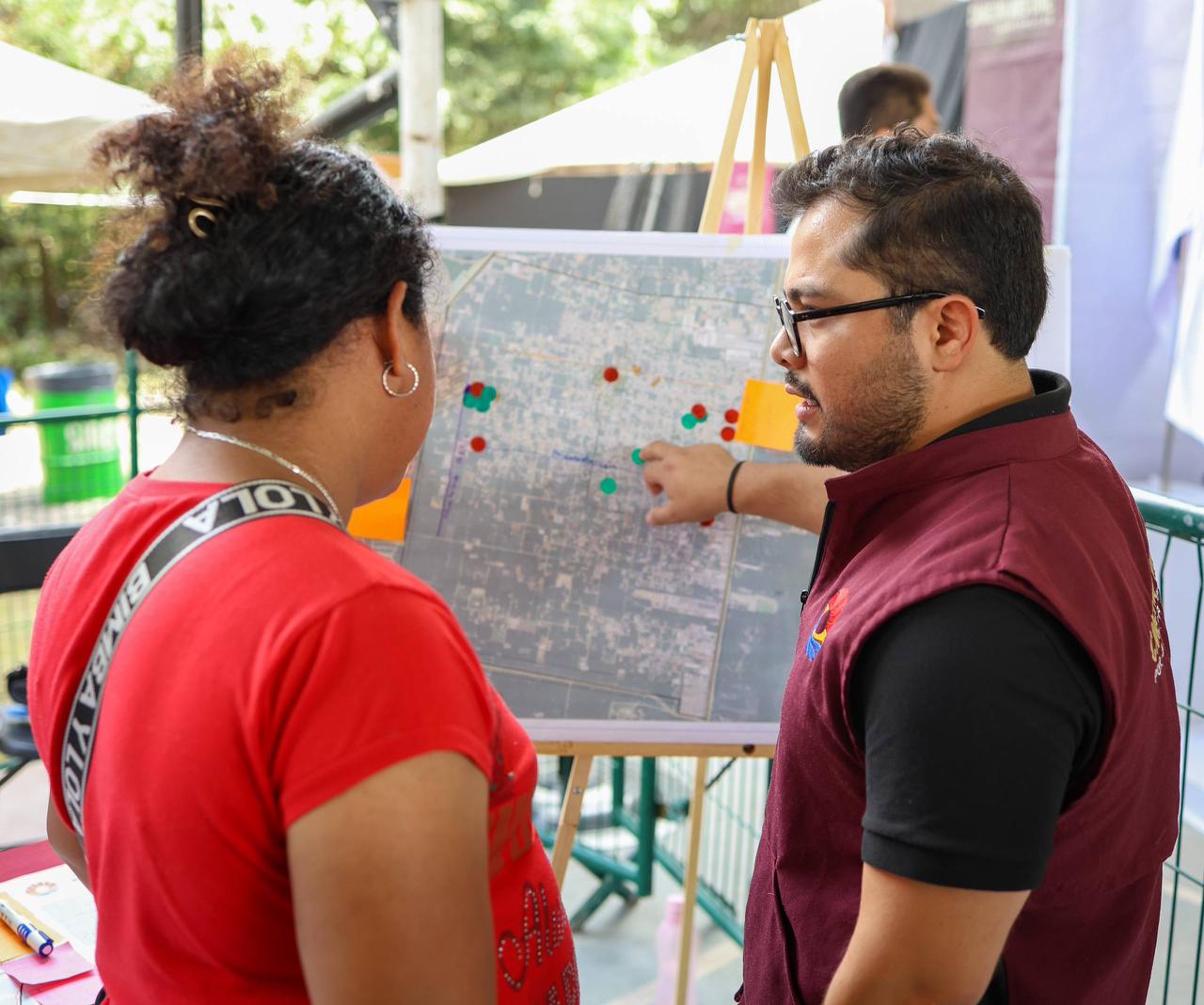 Durante cada audiencia, se entregan mapas específicos de la zona para que los vecinos identifiquen fortalezas, carencias y oportunidades de mejora. Con materiales didácticos accesibles, tanto adultos como niñas y niños pueden dibujar, marcar y proponer soluciones sin tecnicismos.