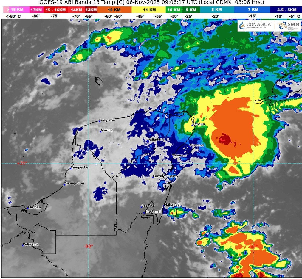 Quintana Roo, 5 de noviembre de 2025. Este miércoles, el estado de Quintana Roo enfrenta condiciones meteorológicas adversas debido a la interacción de sistemas tropicales y frentes fríos. Se prevén lluvias muy fuertes, actividad eléctrica y ráfagas de viento de hasta 50 km/h en zonas costeras y del norte del estado.