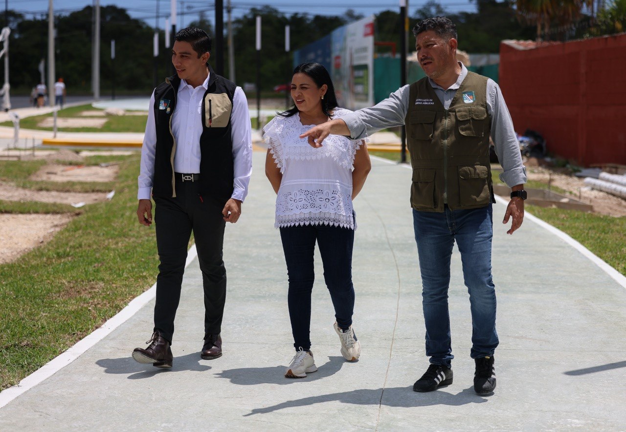 La presidenta municipal de Puerto Morelos, Blanca Merari Tziu Muñoz, realizó un recorrido de supervisión por la obra del Parque Lineal en la Supermanzana 19, un proyecto urbano que se encuentra en su fase final y que representa una inversión superior a 9.5 millones de pesos, destinada a mejorar la calidad de vida de más de 2,500 habitantes de la zona.