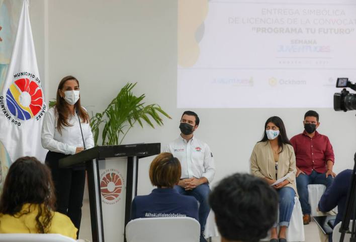 La Presidente Municipal Mara Lezama entregó de manera simbólica 10 licencias a igual número de jóvenes que aprovecharán el curso “Programación Básica” por parte de Ockham Education, a través del Instituto Municipal de la Juventud (IMJUVE), que tiene una duración de 6 horas y media en una modalidad en línea.