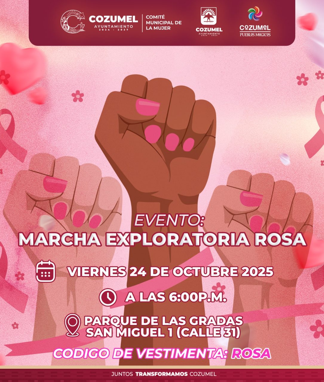 Mayin Mejía Ku, jefa del Departamento del Comité Municipal de la Mujer, destacó que estas actividades responden a la encomienda directa del presidente municipal, quien busca fomentar la salud integral y el bienestar de las mujeres cozumeleñas. El calendario contempla eventos clave durante octubre, iniciando el miércoles 8 con la plática “Prevención del Cáncer de Mama”, a las 6:00 p.m., en las instalaciones del COMUMU, ubicadas en la colonia 10 de abril.