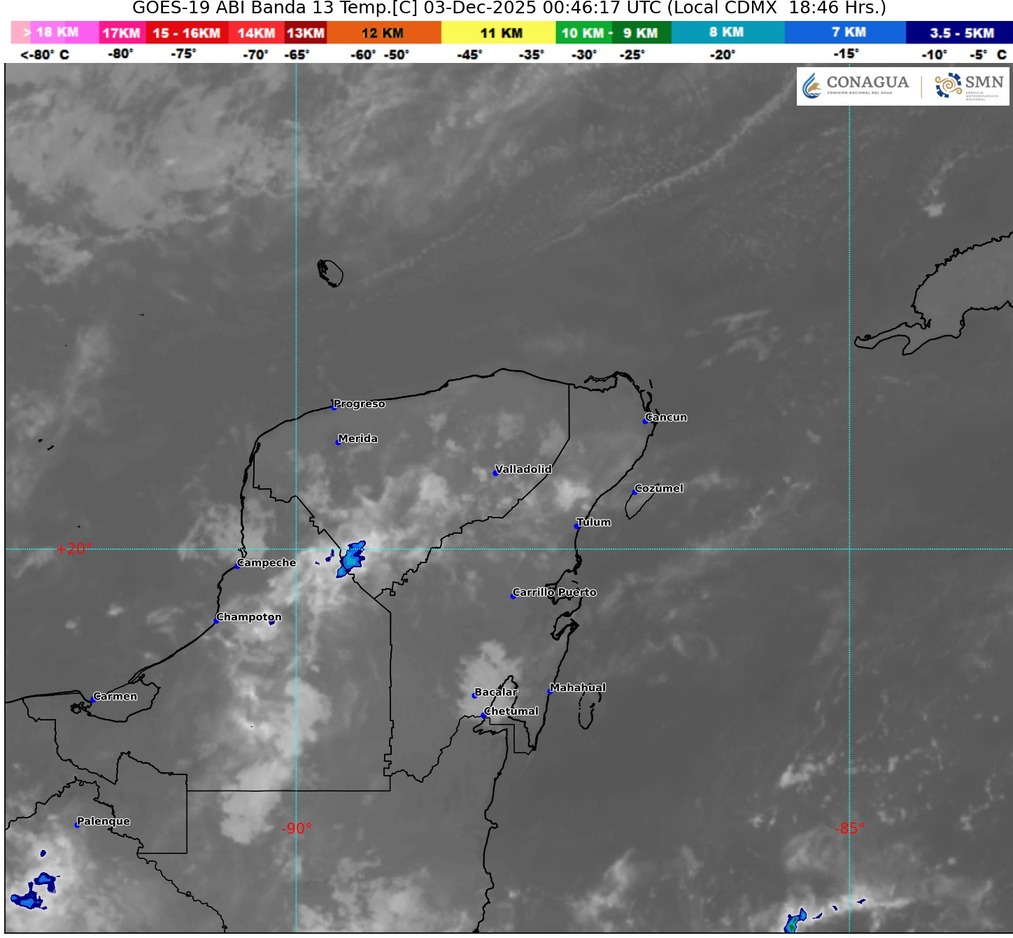 - Chetumal: 26°C | Sensación 28°C