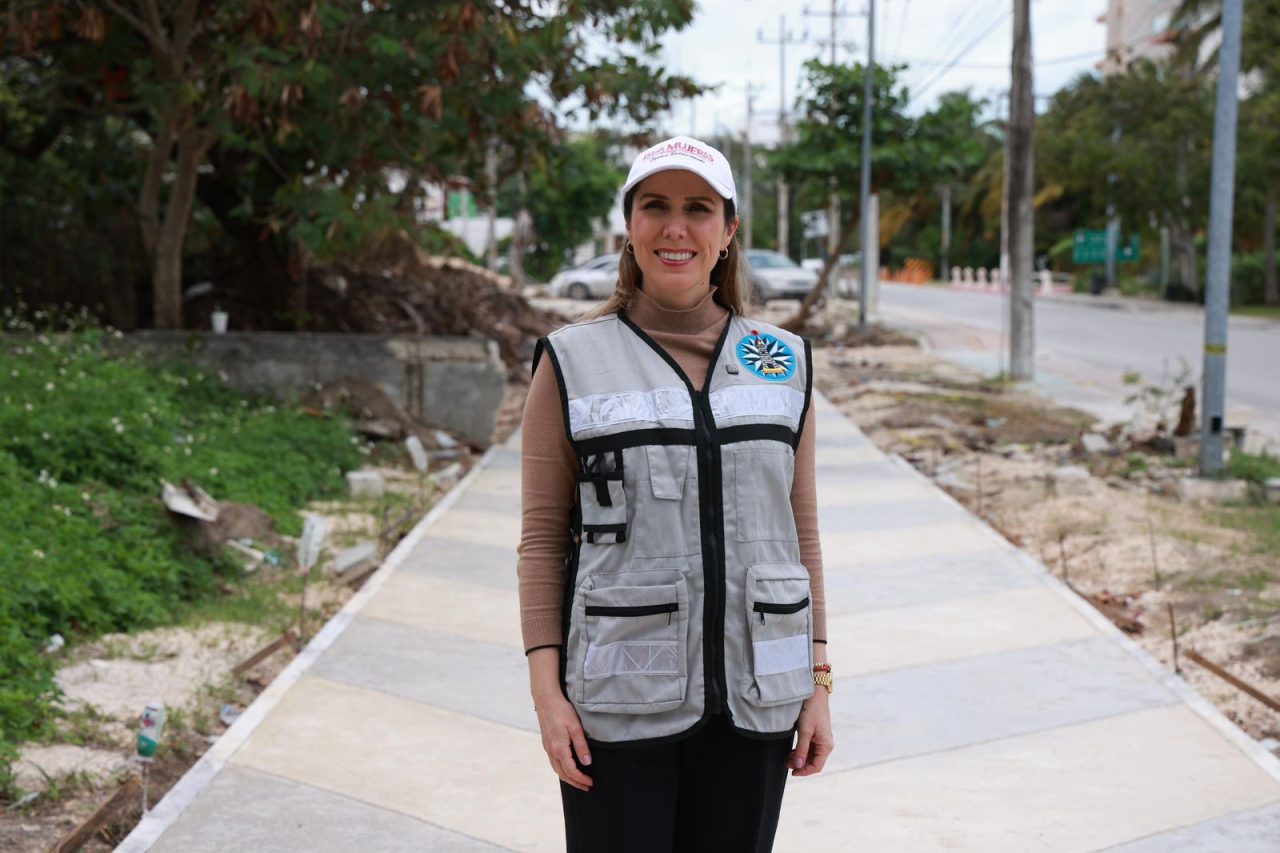 Posteriormente, la presidenta municipal recorrió los trabajos del nuevo andador y ciclovía de Punta Sam, un proyecto integral que transformará la movilidad y la imagen urbana de una de las zonas más transitadas del municipio. La obra incluye guarniciones, banquetas renovadas, luminarias LED, un parador de autobuses y una ciclovía de tres metros de ancho con acabado de concreto estampado, diseñada para brindar mayor seguridad a peatones y ciclistas.