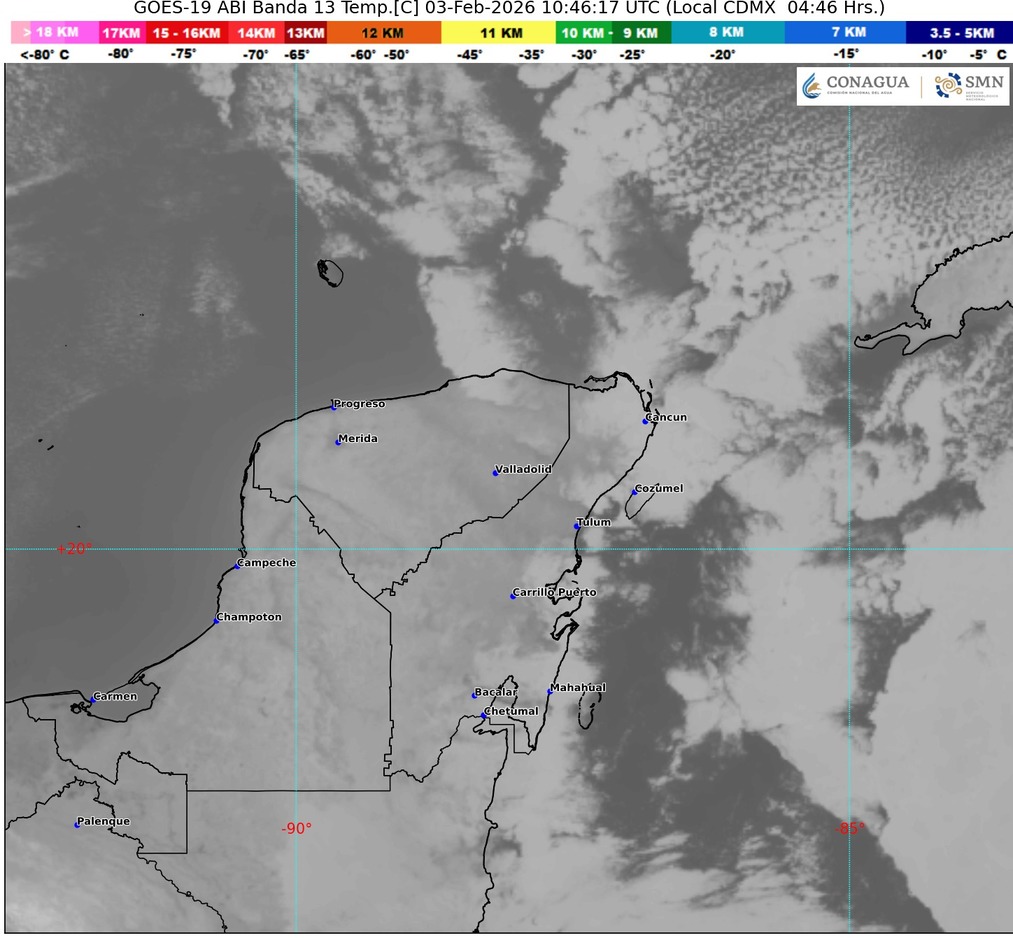 - Othón P. Blanco (Chetumal): 17°C – sensación 18°