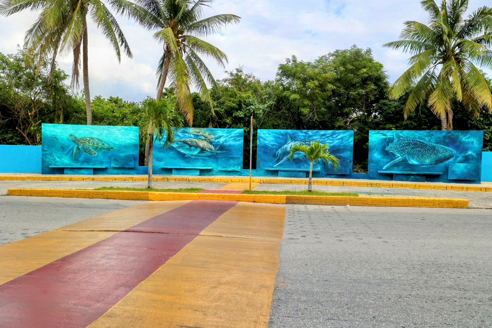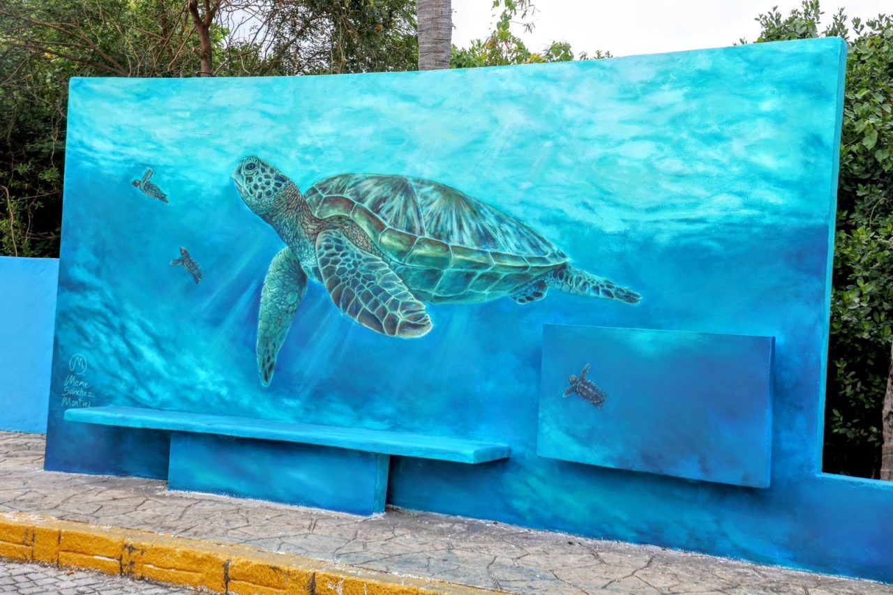 Las obras, creadas por el artista Emmanuel Sánchez, representan al Tiburón Ballena y a la Tortuga Marina, dos especies fundamentales para el ecosistema local y de gran valor para la identidad isleña. Además de embellecer uno de los accesos principales del municipio, los murales transmiten un mensaje claro de preservación y responsabilidad ambiental.