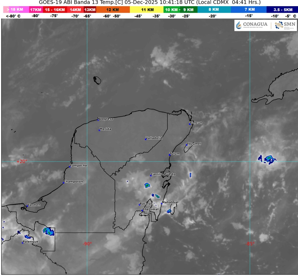 Quintana Roo enfrenta un día marcado por lluvias intermitentes y temperaturas cálidas, con sensación térmica elevada debido a la humedad. El pronóstico para este viernes 5 de diciembre de 2025 indica cielos mayormente nublados y lluvias ligeras a moderadas en la zona norte del estado, especialmente en Cancún y municipios aledaños.