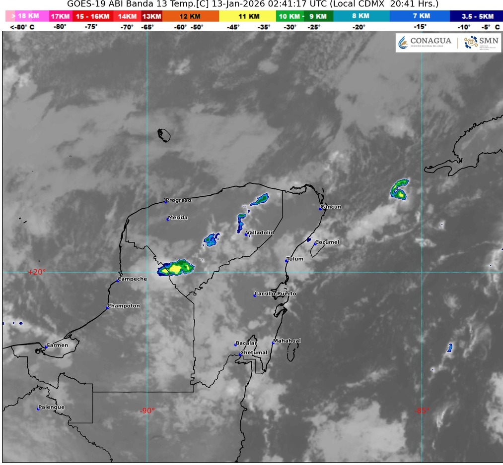 Quintana Roo amanece este 13 de enero de 2026 con un ambiente cálido, húmedo y con probabilidad de lluvias intermitentes, especialmente en la zona norte del estado. La entrada de humedad del Caribe y un canal de baja presión favorecen cielos nublados y precipitaciones dispersas durante gran parte del día.