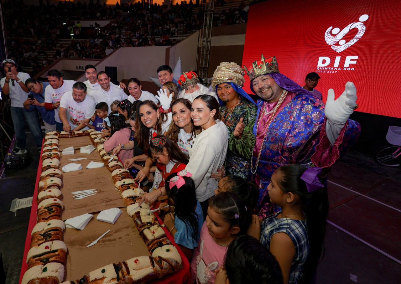 Cancún celebró con gran entusiasmo el Día de Reyes en un evento multitudinario encabezado por la presidenta municipal Ana Paty Peralta, la gobernadora Mara Lezama y la presidenta honoraria del DIF Quintana Roo, Verónica Lezama Espinosa. Más de 8 mil 500 niñas, niños y adultos se reunieron en la Plaza de Toros para disfrutar una tarde llena de música, baile y actividades que reforzaron la unión familiar y el espíritu comunitario.