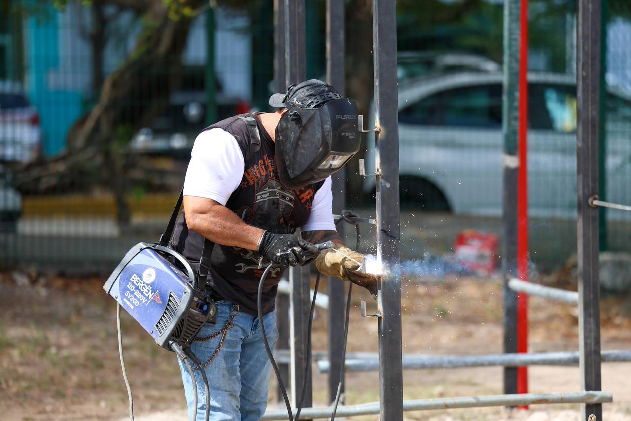 Durante un recorrido de supervisión, la Alcaldesa destacó que el espacio está siendo sometido a una remodelación integral para garantizar instalaciones dignas y funcionales. Entre los trabajos se incluyen raspado y pintura de la cancha, instalación de sombras en las bancas, colocación de pasto sintético en áreas comunes, renovación de la malla perimetral, un gimnasio de calistenia al aire libre y la rehabilitación completa de baños y vestidores. Además, se habilitará un área de cafetería para brindar un entorno más cómodo a los usuarios.