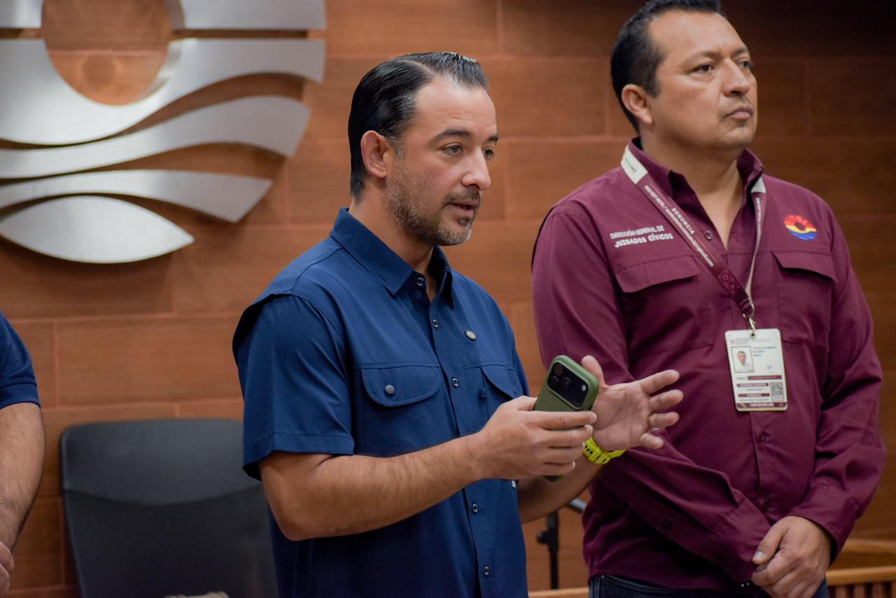 En representación de la Presidenta Municipal, Ana Paty Peralta, el funcionario guió un recorrido por la sala de audiencias orales en la Supermanzana 247, donde explicó el papel de jueces, secretarios, defensores y demás actores que intervienen en los procedimientos. Subrayó que Cancún es el primer municipio de Quintana Roo en homologarse al modelo impulsado por la presidenta de México, Claudia Sheinbaum, y respaldado en el estado por la gobernadora Mara Lezama.