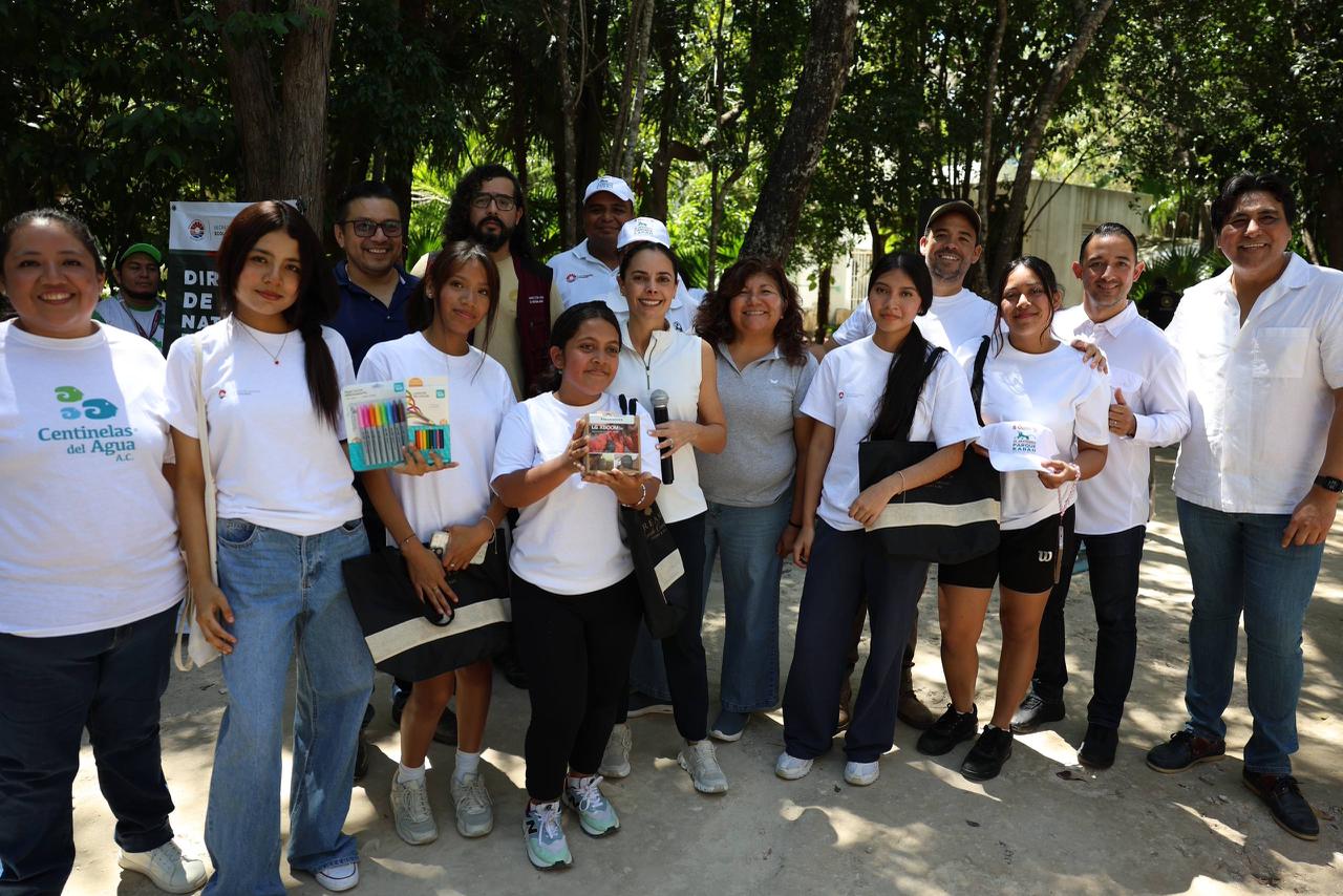 Cancún, Q. R., 22 de marzo de 2026.— En el marco del Día Mundial del Agua, la presidenta municipal Ana Paty Peralta encabezó la premiación del “Rally por el Agua 2026”, una actividad que reunió a más de 60 estudiantes y adultos en el Parque Kabah, con el objetivo de fortalecer la conciencia ciudadana sobre la importancia del uso responsable del vital líquido.