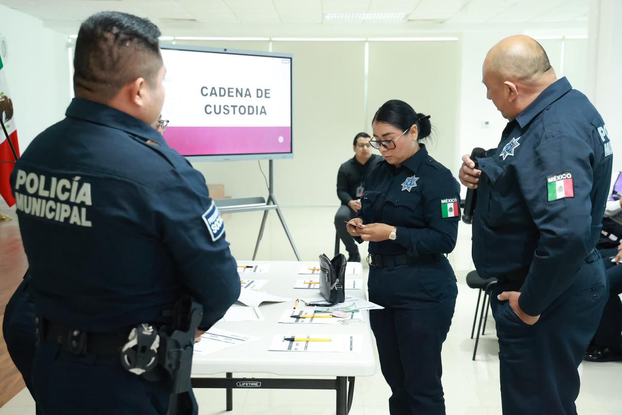 Durante la capacitación se abordaron temas esenciales para el desempeño policial, entre ellos las funciones del primer respondiente, la correcta aplicación de la cadena de custodia y la elaboración del Informe Policial Homologado (IPH). Asimismo, se revisaron procedimientos clave como la detención en flagrancia, la preservación del lugar de los hechos, el llenado del IPH, el Registro Nacional de Detenciones y la coordinación operativa bajo el mando de la autoridad ministerial.