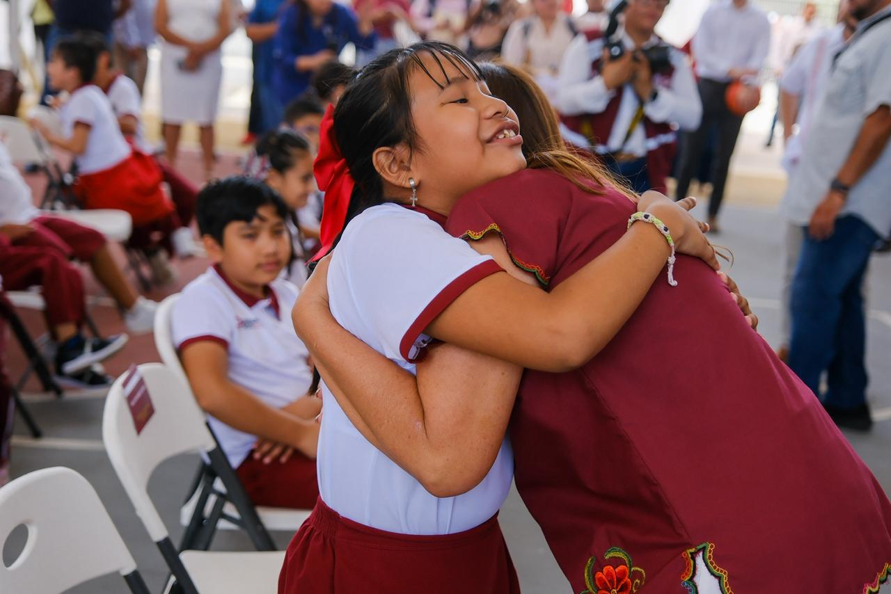 La gobernadora Mara Lezama Espinosa encabezó la entrega oficial del nuevo domo en la escuela primaria Tulum, una obra largamente esperada que hoy beneficia a más de 500 estudiantes de ambos turnos. Con un mensaje centrado en la protección, el bienestar y la felicidad de la niñez, la mandataria exhortó a las y los alumnos a tomar decisiones correctas, rechazar la violencia y buscar siempre una vida plena.