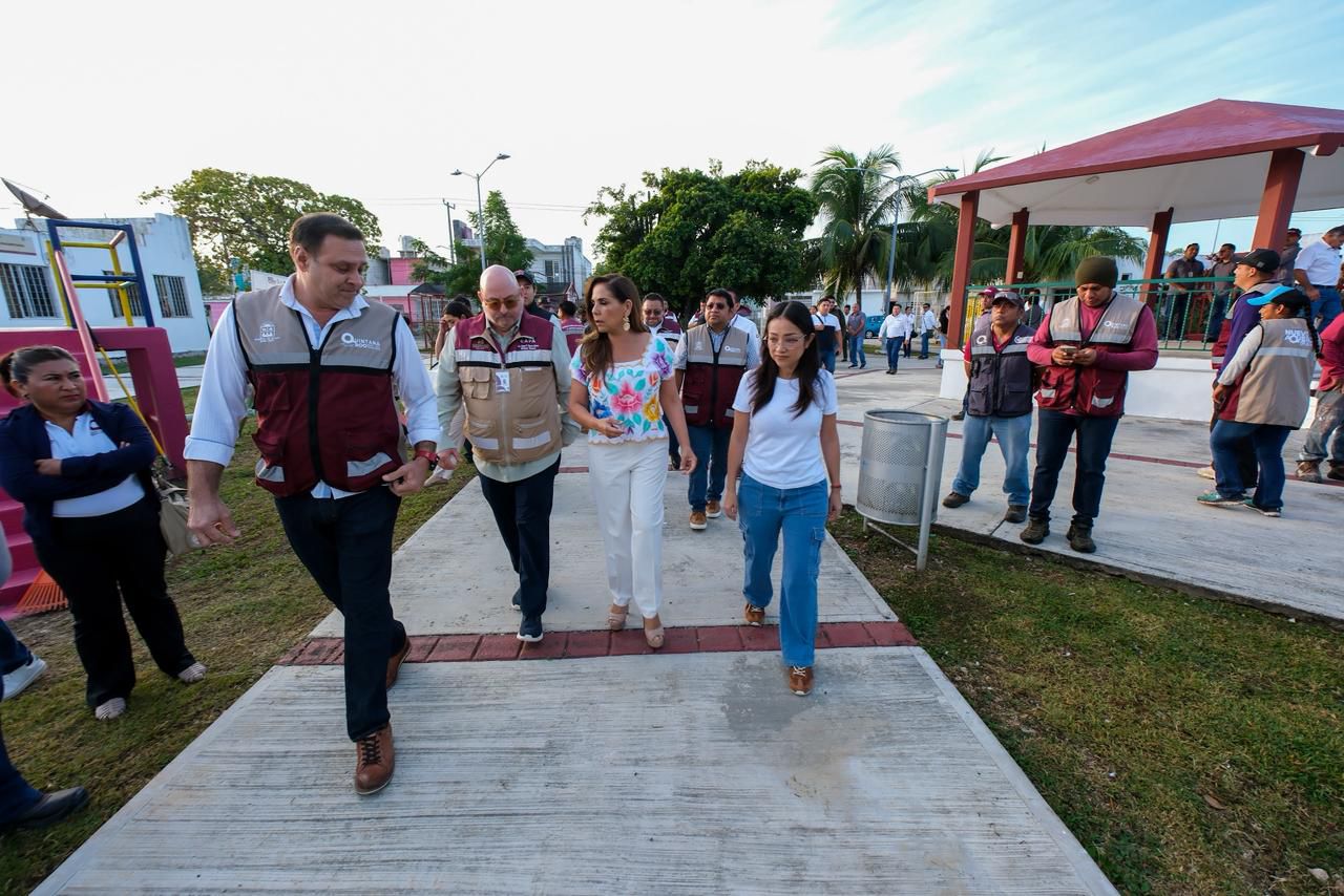 Acompañada de vecinas y vecinos de la colonia Proterritorio, la mandataria destacó que este espacio, de 4 mil metros cuadrados, fue completamente renovado. Entre las mejoras se incluyen 3 mil metros de áreas jardinadas, 42 luminarias nuevas, juegos infantiles restaurados, canchas seguras y zonas verdes totalmente limpias. “Recuperar los espacios públicos es construir comunidad y paz. Este parque es de todas y todos los chetumaleños”, expresó.