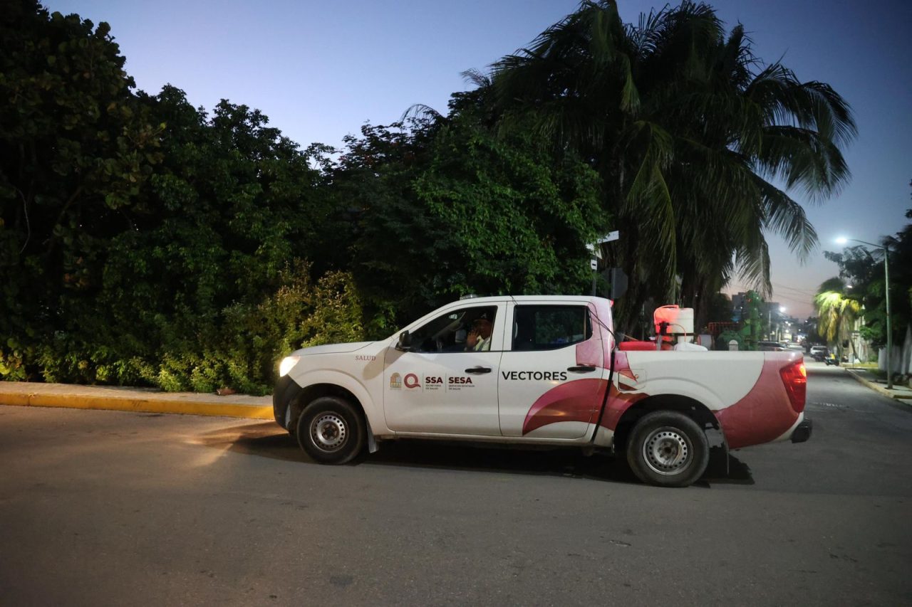 La Directora de Salud Municipal, Teresa Gómez Herrera, informó que la estrategia se realiza en coordinación con el Área de Vectores de la Jurisdicción Sanitaria Número 2 y la Secretaría de Salud de Quintana Roo, con fumigaciones semanales en colonias, zonas rurales y carreteras. El jueves se atendieron las colonias Electricistas, Salina Grande, Santa Rosa, Caridad del Cobre y Miraflores, además de las vías Garrafón y Sac Bajo. Este viernes, las brigadas se desplegaron en la Zona Continental, Zona Agrícola y Francisco May.