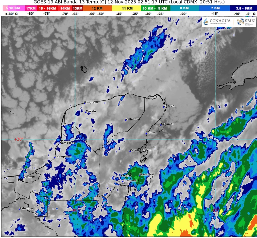 - Chetumal: 24 °C / Sensación térmica: 25 °C