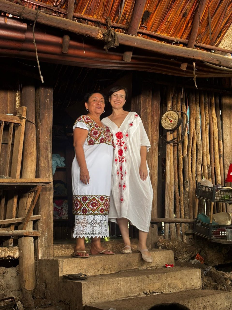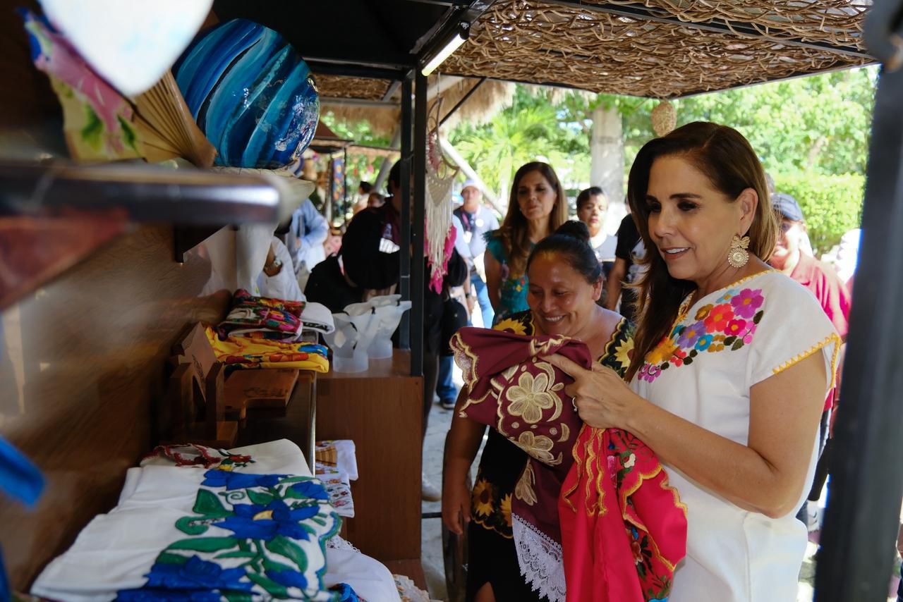 Ataviada con un traje típico confeccionado por los talentosos artesanos Francisca e Hilario de Chanchen Primero, del municipio de Tulum, resaltó el trabajo de la mano con el Gobierno de México para que la ciudadanía pueda tener oportunidades de desarrollo a través del Instituto de Economía Social y Solidaria de Quintana Roo.