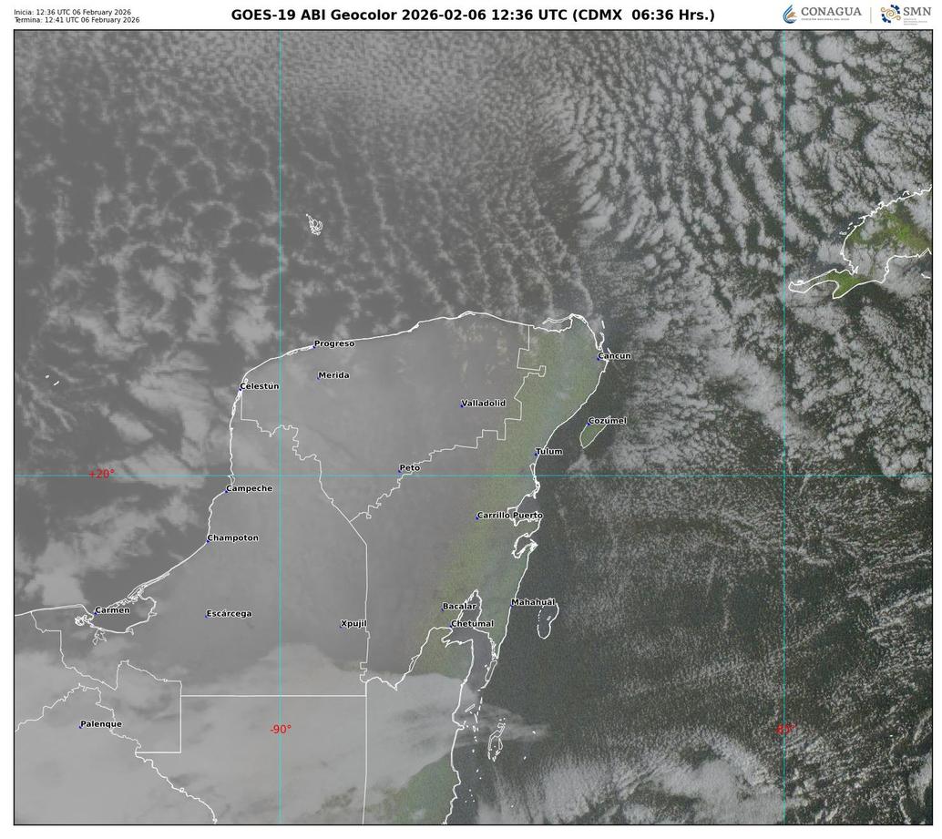 Viernes 6 de febrero de 2026 El estado de Quintana Roo amaneció con condiciones estables, predominando el cielo parcialmente nublado y un ambiente cálido desde primeras horas del día. La humedad continúa elevada, lo que incrementa la sensación térmica en la mayor parte del territorio. No se prevén lluvias significativas durante la jornada.