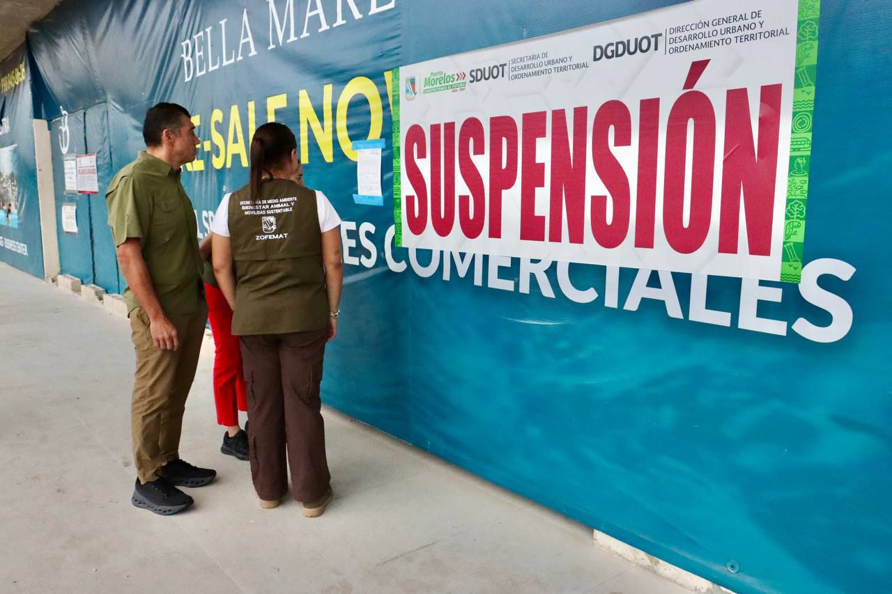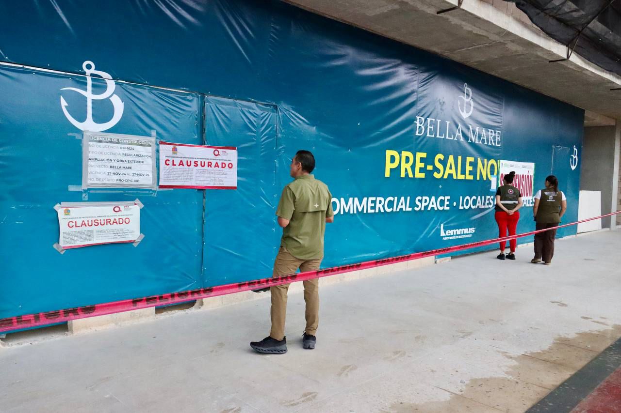 El Ayuntamiento de Puerto Morelos ejecutó una nueva acción administrativa en defensa del orden urbano y ambiental al suspender formalmente las obras del desarrollo Bella Mare Condos & Shopping Mall, ubicado en el primer cuadro del Casco Antiguo. La medida fue aplicada el pasado 23 de enero por la Secretaría de Desarrollo Urbano y Ordenamiento Territorial, luego de detectar que el proyecto en construcción no corresponde a los parámetros aprobados originalmente ante la autoridad municipal.