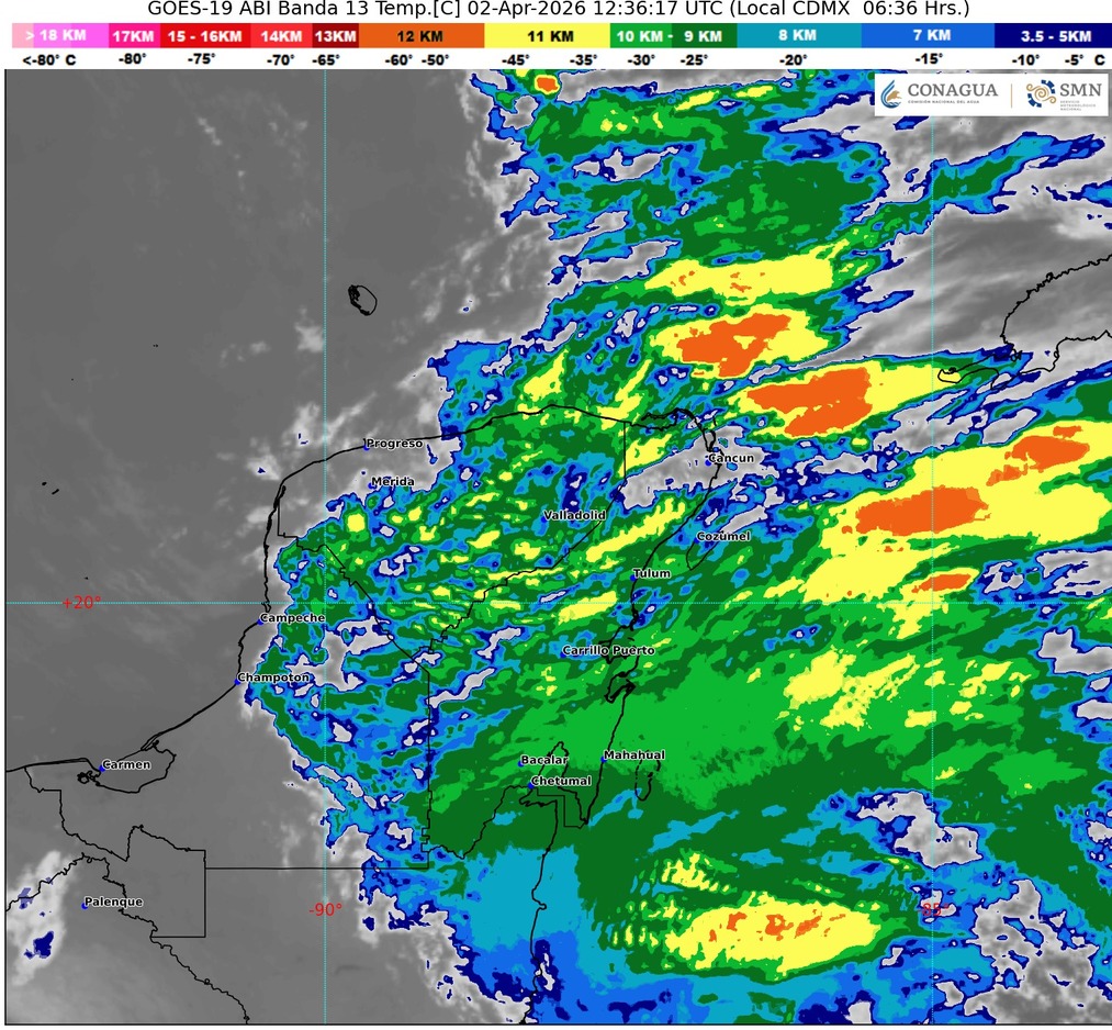 El estado de Quintana Roo inicia este 2 de abril con cielo nublado, ambiente cálido y condiciones variables de lluvia, especialmente hacia el centro y sur del territorio. Mientras la zona norte amanece con estabilidad atmosférica, el resto del estado se mantiene bajo vigilancia por chubascos y lluvias fuertes, acompañadas de rachas de viento moderadas.
