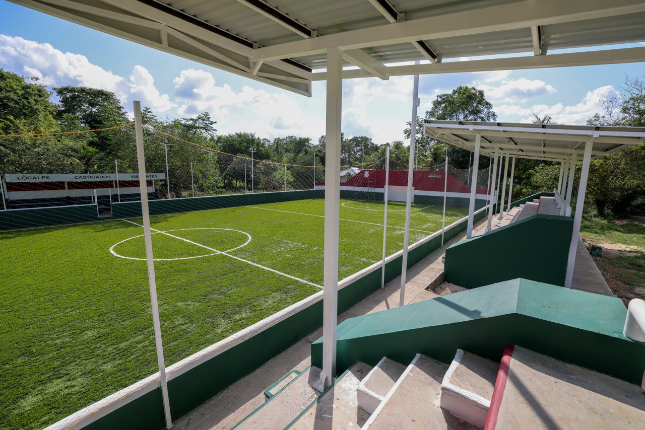 Puerto Morelos, Quintana Roo, 29 de diciembre de 2025.— El Ayuntamiento de Puerto Morelos, a través de la Secretaría de Obras Públicas, concluyó la rehabilitación integral del Campo de Futbol 7 en la delegación de Leona Vicario, con una inversión de 2 millones 993 mil 522.47 pesos, IVA incluido. La obra representa un paso firme en el fortalecimiento de la infraestructura deportiva y en la ampliación de espacios públicos dignos y seguros para la ciudadanía.