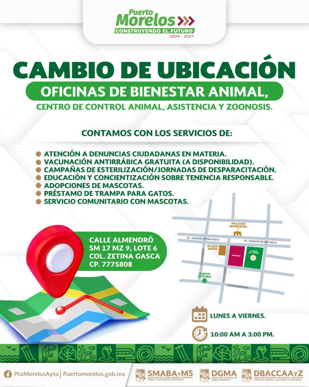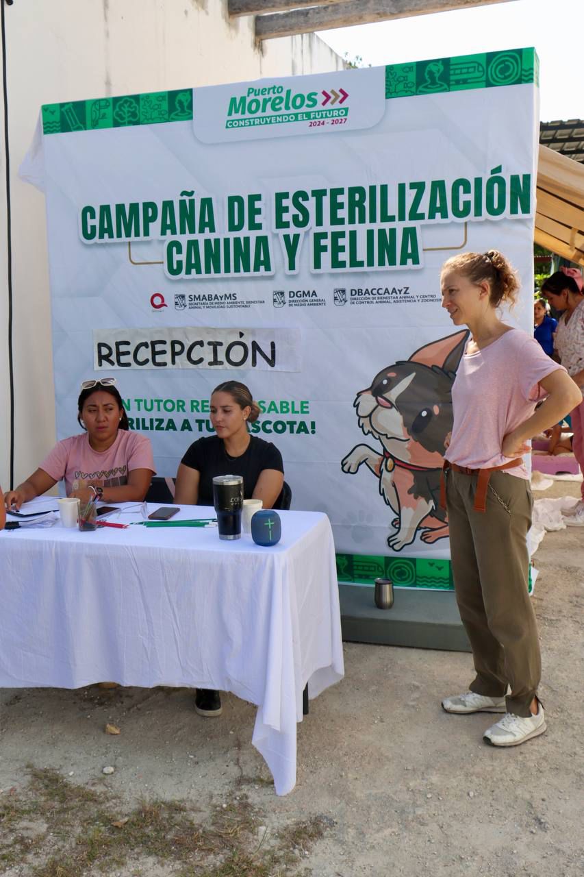 Puerto Morelos, Quintana Roo, 3 de enero de 2026.— Con el objetivo de fortalecer la salud pública y garantizar el bienestar animal, el Ayuntamiento de Puerto Morelos informó que durante 2025 se esterilizaron alrededor de 800 mascotas domésticas —principalmente perros y gatos— y se aplicaron mil 100 vacunas antirrábicas de manera gratuita. Así lo dio a conocer la presidenta municipal Blanca Merari Tziu Muñoz, quien destacó que estas acciones forman parte de una estrategia integral para prevenir enfermedades y promover una convivencia responsable entre la población y sus animales de compañía.