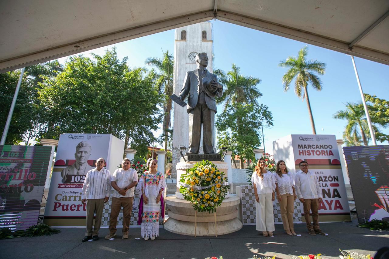 Felipe Carrillo Puerto, uno de los líderes sociales más influyentes del sureste mexicano, fue recordado este martes durante la ceremonia cívica por el 102 aniversario de su fallecimiento, encabezada por la Gobernadora Mara Lezama y la Presidenta Municipal Mary Hernández, en el corazón de la Zona Maya. El acto reunió a representantes de los tres niveles de gobierno y a la clase política estatal, quienes rindieron homenaje al prócer yucateco cuyo legado continúa marcando la vida pública de la región.