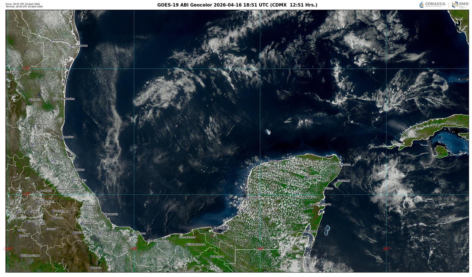 Quintana Roo, 16 de abril de 2026.– El estado registra este jueves condiciones de calor intenso, humedad elevada y probabilidad de lluvias aisladas, derivadas del ingreso de aire marítimo tropical procedente del Caribe y la presencia de un canal de baja presión en la región peninsular. Desde primeras horas del día, los municipios del norte y centro reportaron ambiente bochornoso, mientras que en la zona sur se prevé un incremento de nubosidad hacia la tarde.